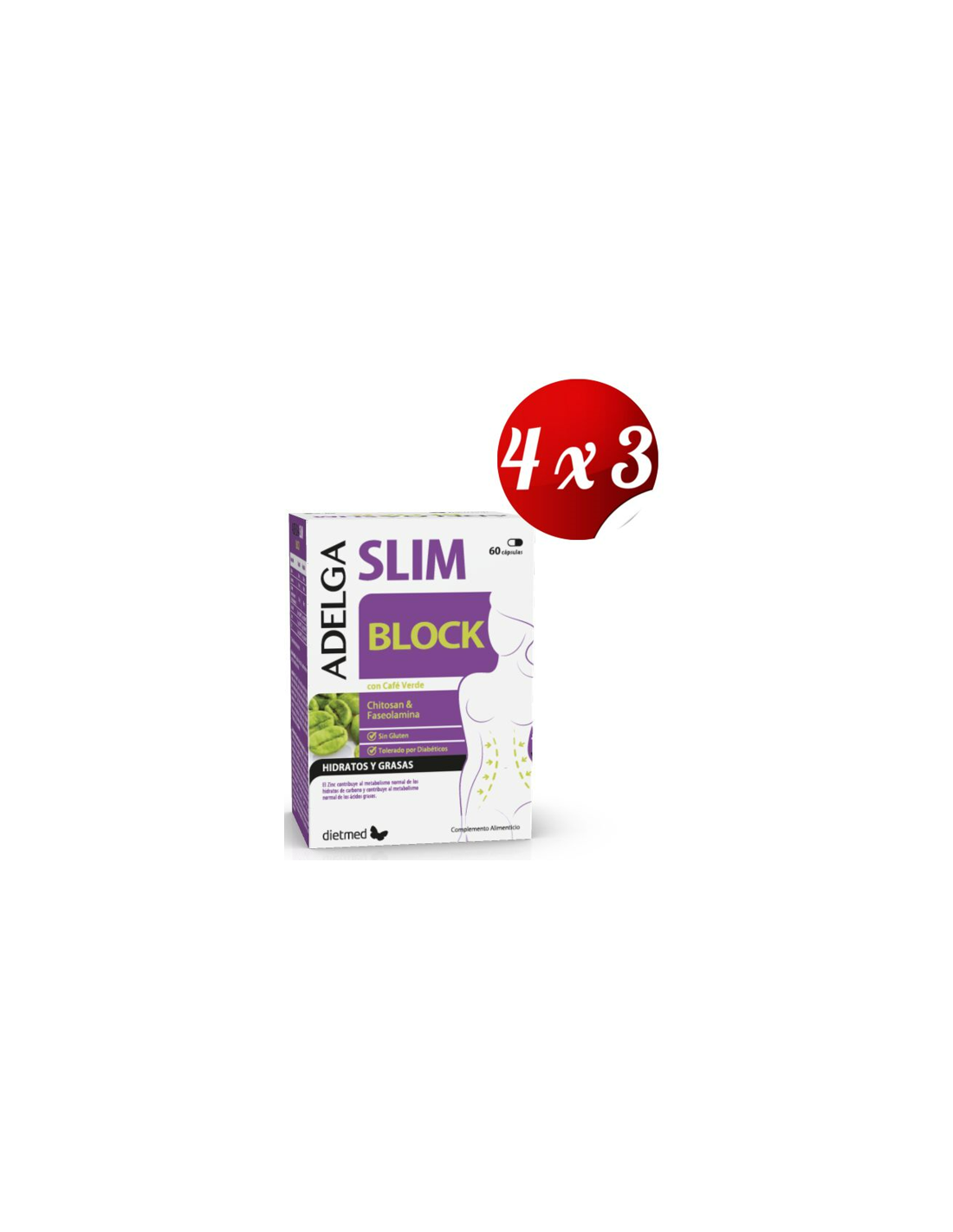 DIETMED.El Pack 4x3 uds Adelgaslim Block 60Cap. de Dietmed está diseñado para personas que buscan un complemento alimenticio que apoye sus hábitos saludables. Este pack ofrece una presentación práctica para quienes desean mantener una rutina constante con un producto formulado para acompañar un estilo de vida equilibrado.