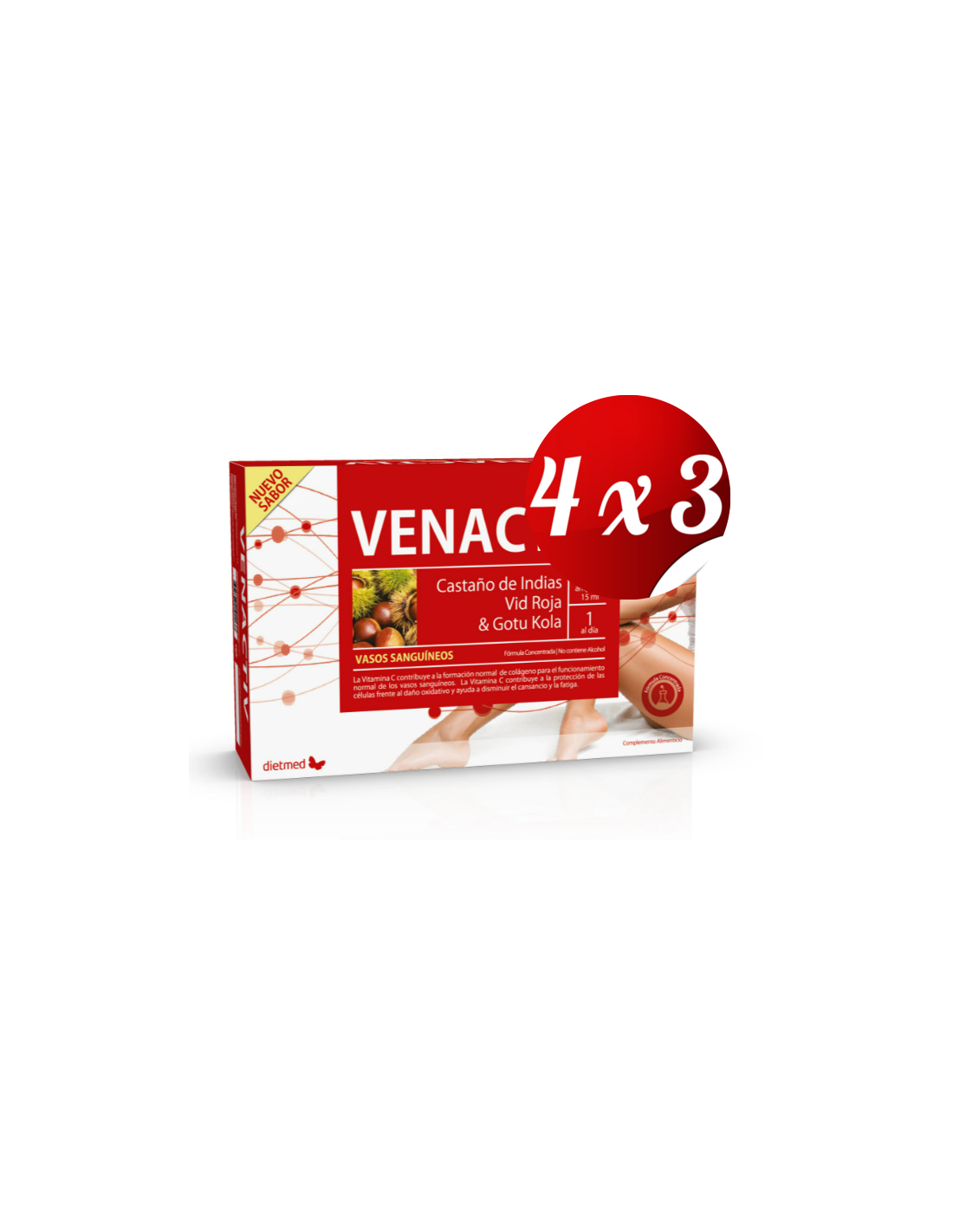 El Pack 4x3 uds Venactiv 20Amp. de Dietmed está diseñado para personas que buscan un complemento nutricional orientado al bienestar circulatorio. Este pack ofrece una presentación práctica para quienes desean mantener una rutina constante con un producto formulado para apoyar la salud vascular.
