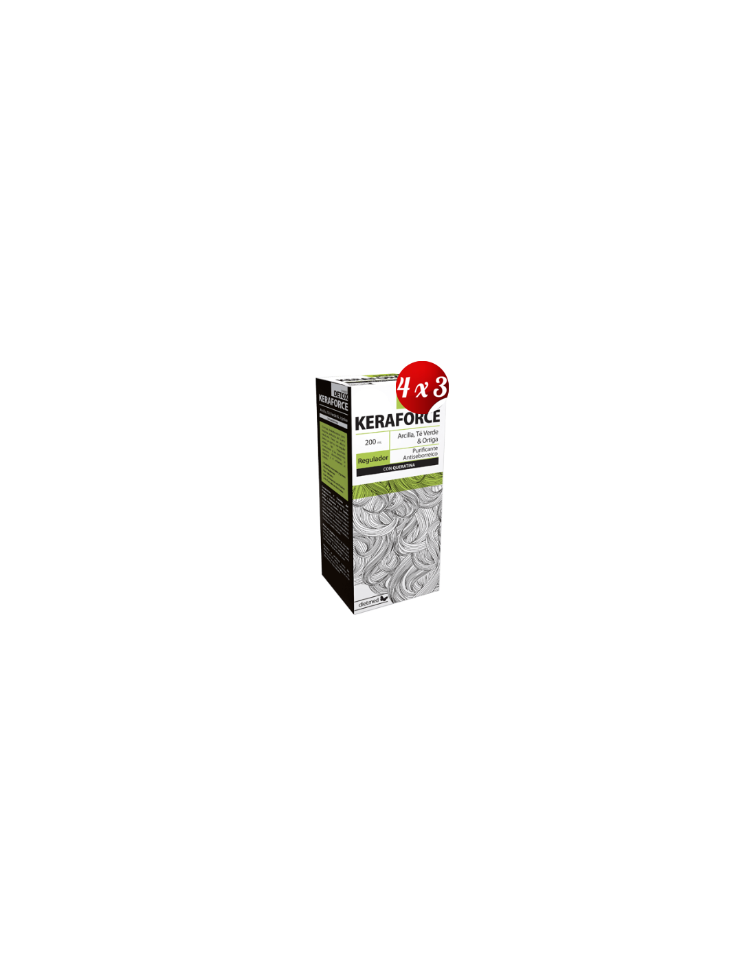 DIETMED.El Pack 4x3 uds Keraforce Detox Champú 200 ml de Dietmed está diseñado para personas que buscan un cuidado capilar que ayude a mantener el cuero cabelludo limpio y equilibrado. Este conjunto es adecuado para quienes desean una rutina de lavado que contribuya a la sensación de frescura y bienestar diario.