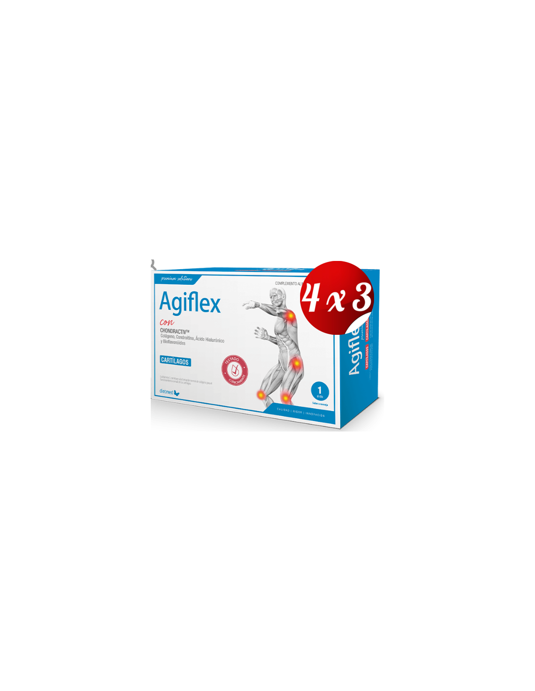 El Pack 4x3 uds Agiflex 20Amp. de Dietmed está diseñado para personas que buscan un suplemento que apoye su bienestar diario con una dosificación práctica y controlada. Este pack es adecuado para quienes prefieren una presentación múltiple que facilite la continuidad en su rutina.