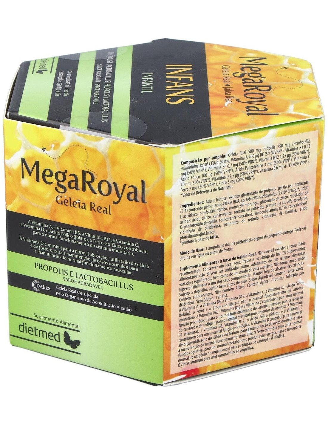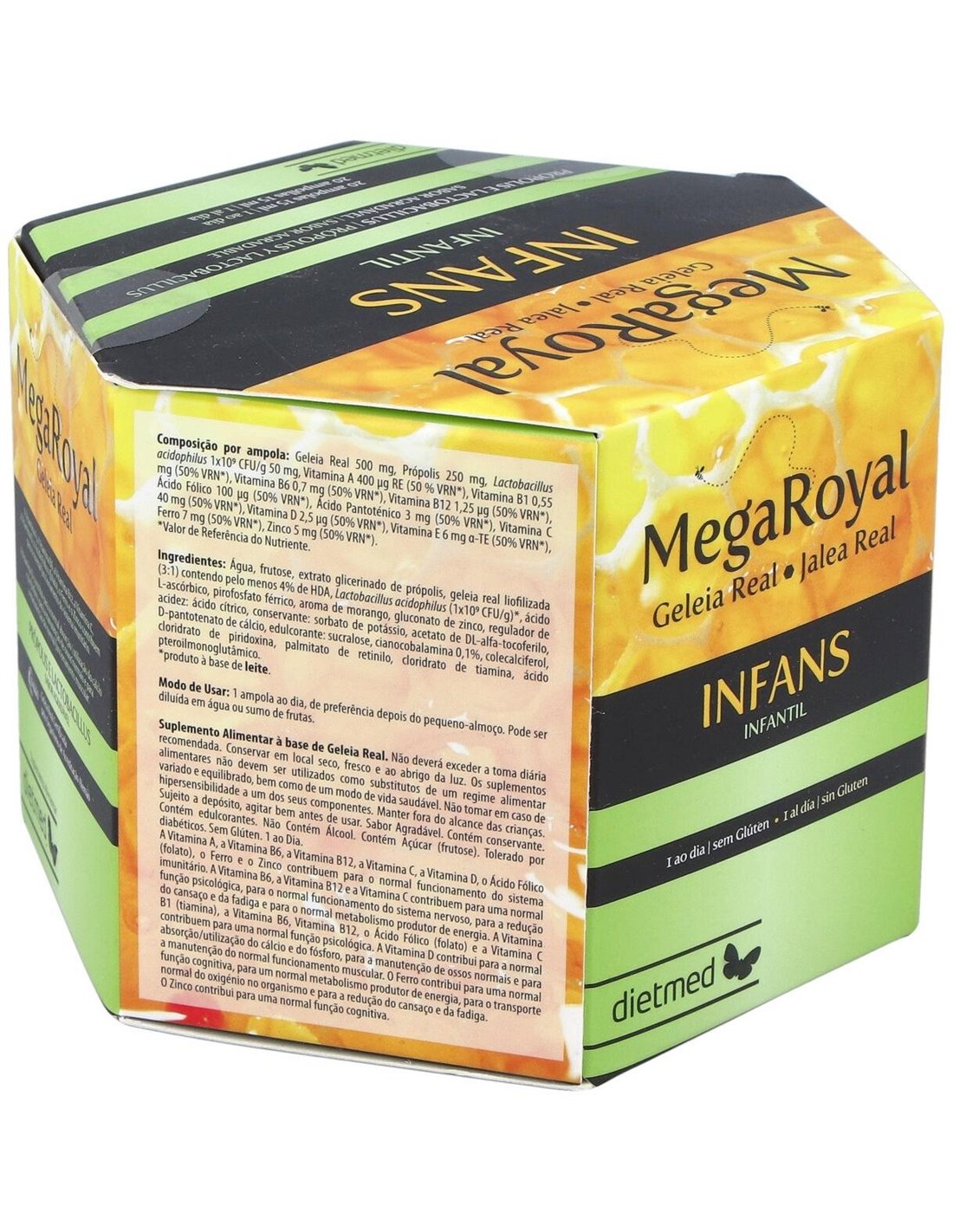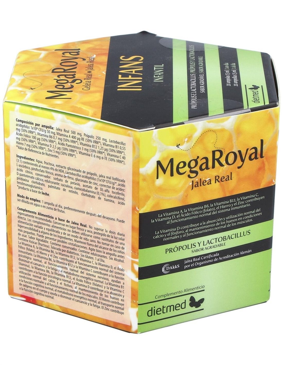 Megaroyal Infans 20Amp. de Dietmed es un suplemento diseñado para personas que buscan apoyar su bienestar diario mediante una fórmula equilibrada. Está pensado para quienes desean complementar su alimentación con ingredientes seleccionados que contribuyen a mantener un estilo de vida saludable.