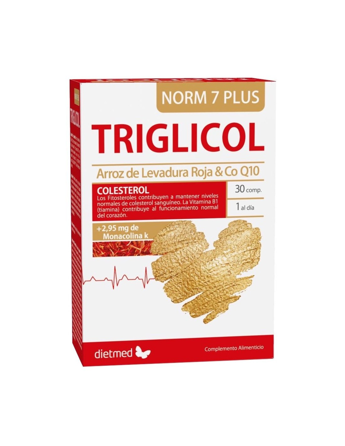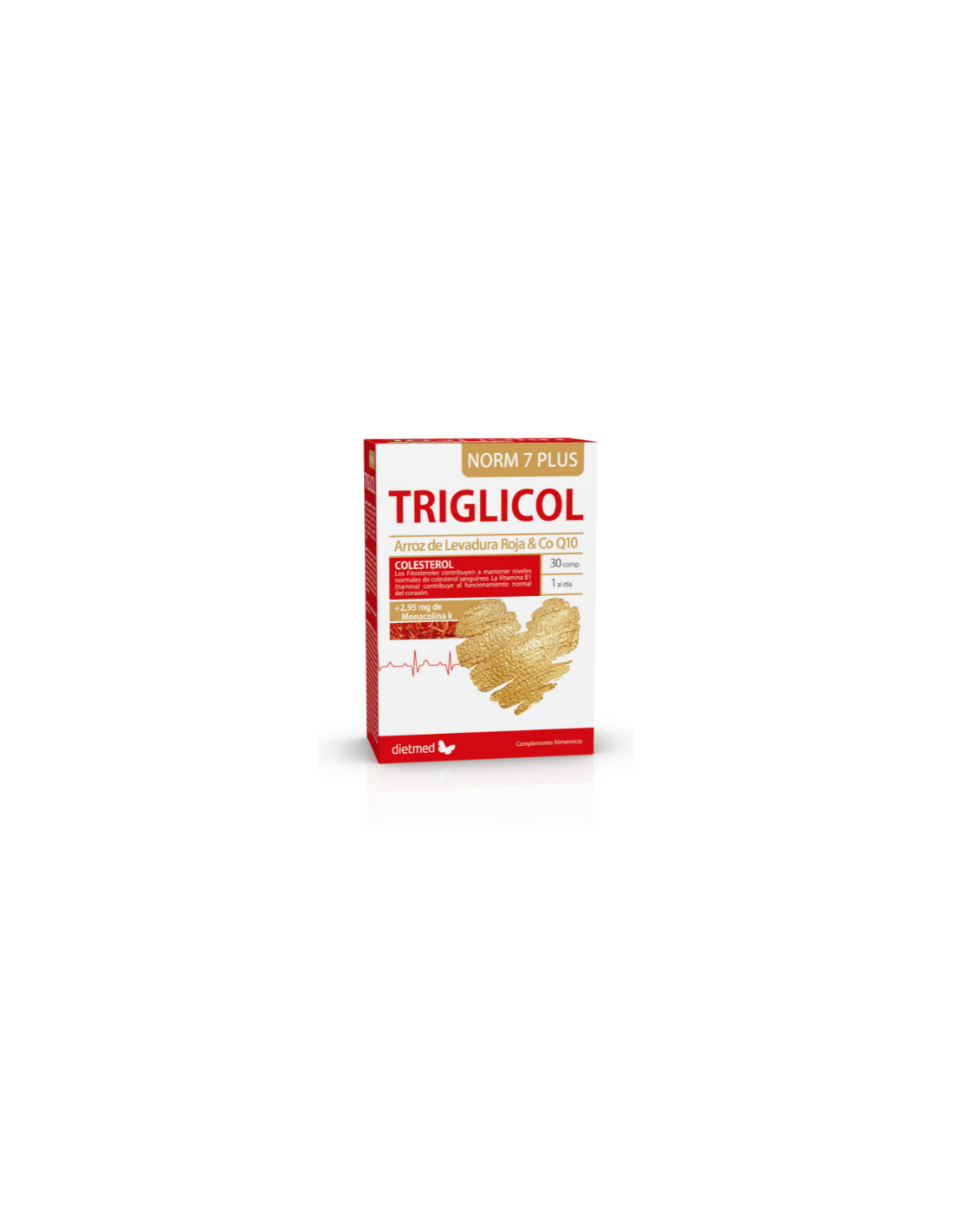 Levadura roja de arroz: A nivel hepático, la monacolina K inhibe la acción de la enzima responsable de la síntesis de colesterol. Teniendo en cuenta su importancia en el metabolismo energético de las células y su acción antioxidante, Triglicol NORM 7 Plus también incluye CoQ10 en su composición.