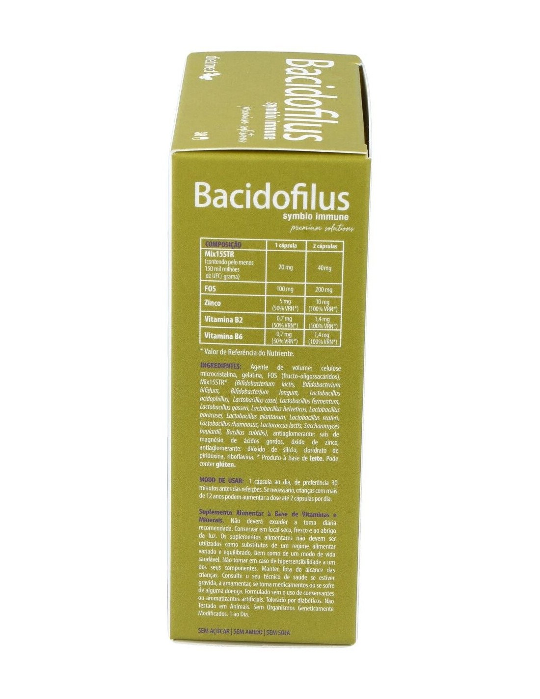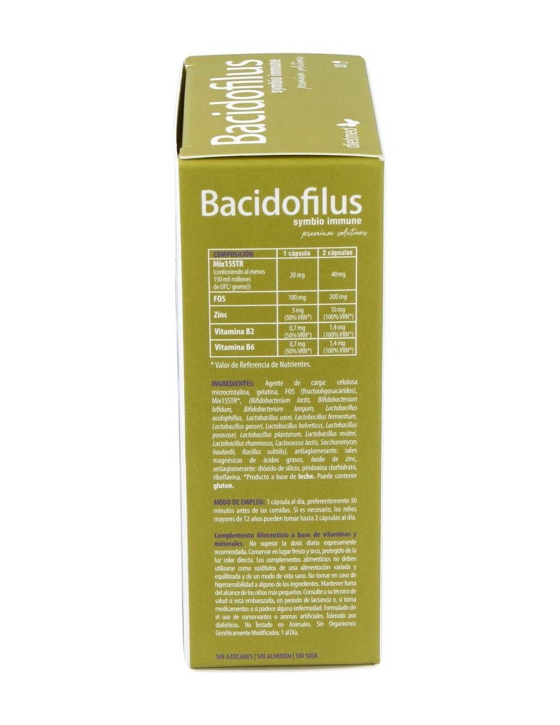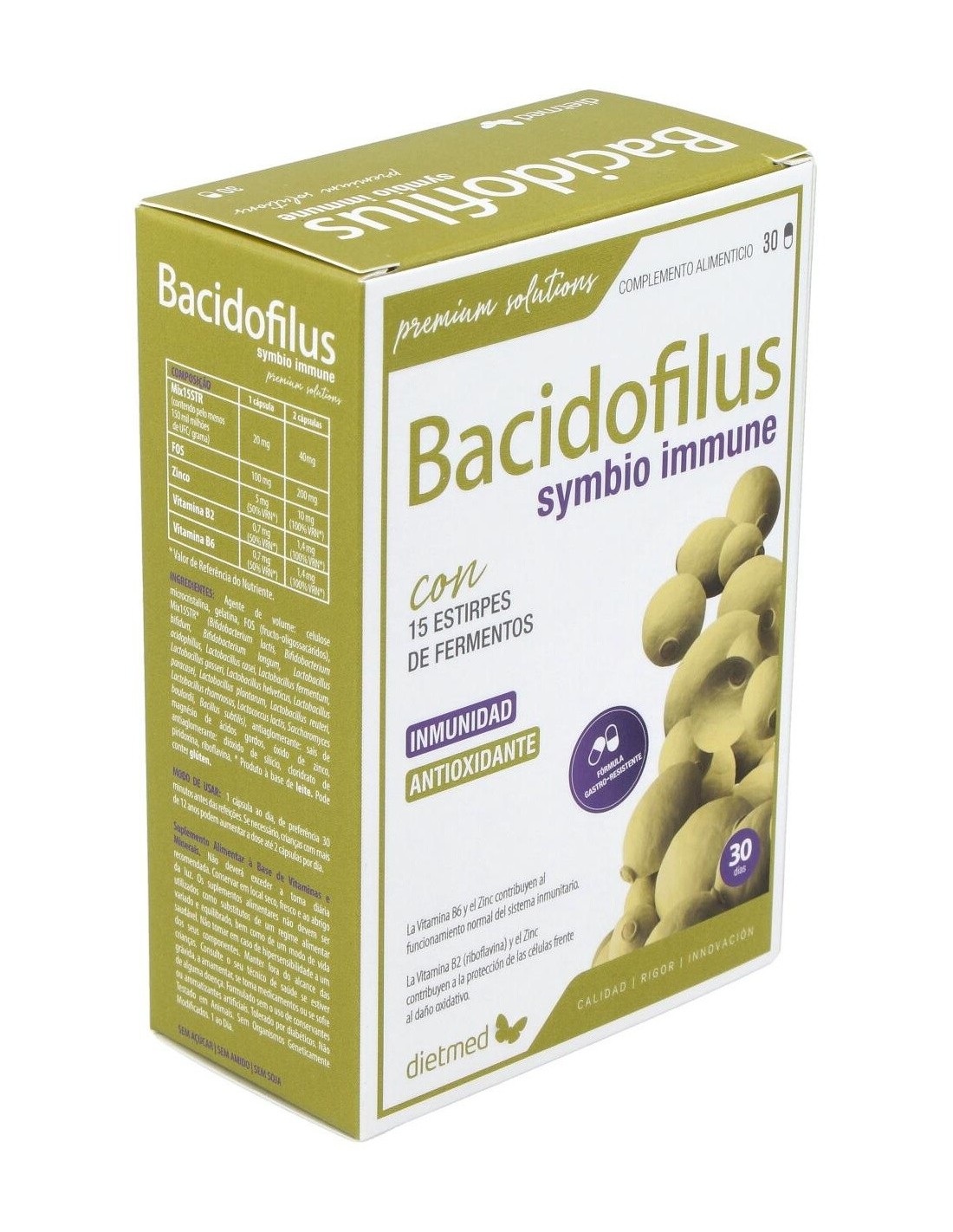 DIETMEDEl producto Bacidofilus Symbio presenta en su composición un conjunto de 15 estirpes de fermentos lácticos, siendo estos essenciales para una correcta