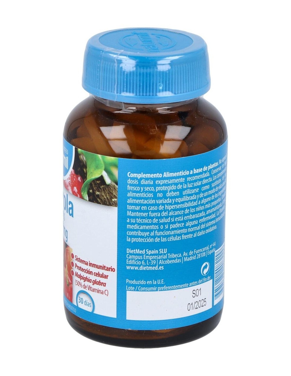 DIETMEDEl Acerola 1000Mg. 60Comp. de Dietmed es un suplemento vitamínico para personas que buscan apoyar su ingesta diaria de vitamina C, aportando 1000 mg por comprimido para contribuir al bienestar general.