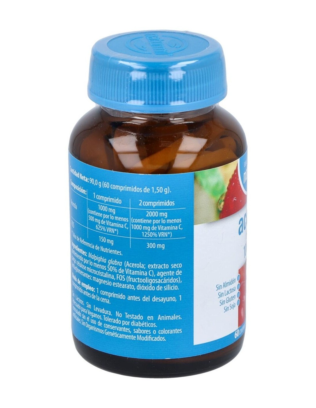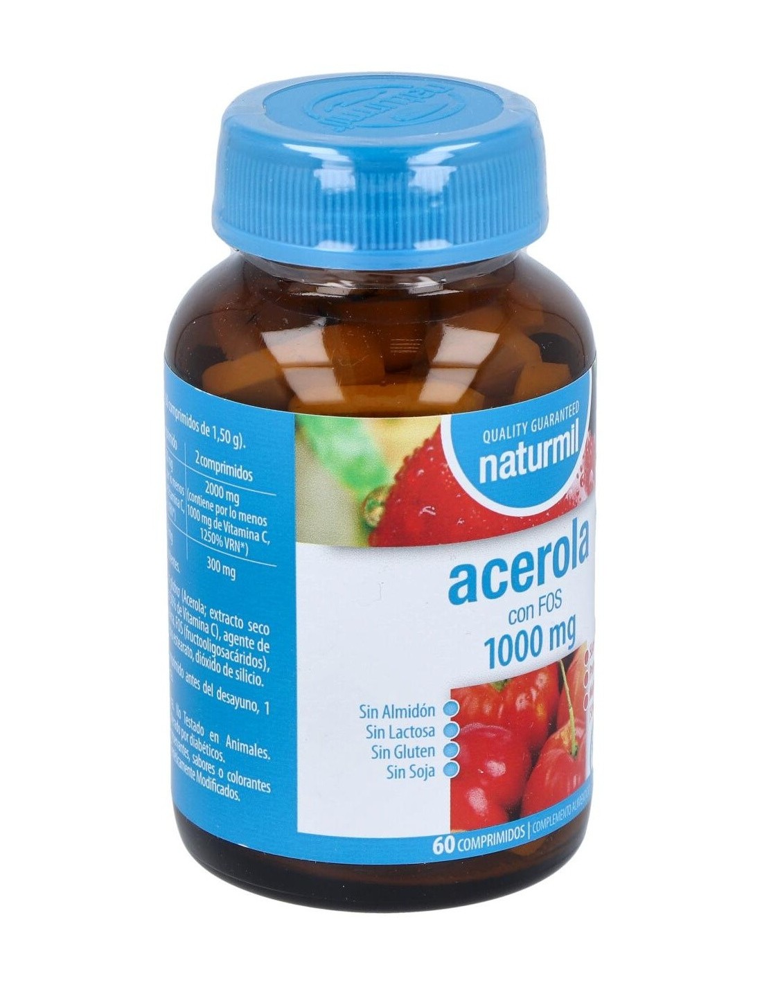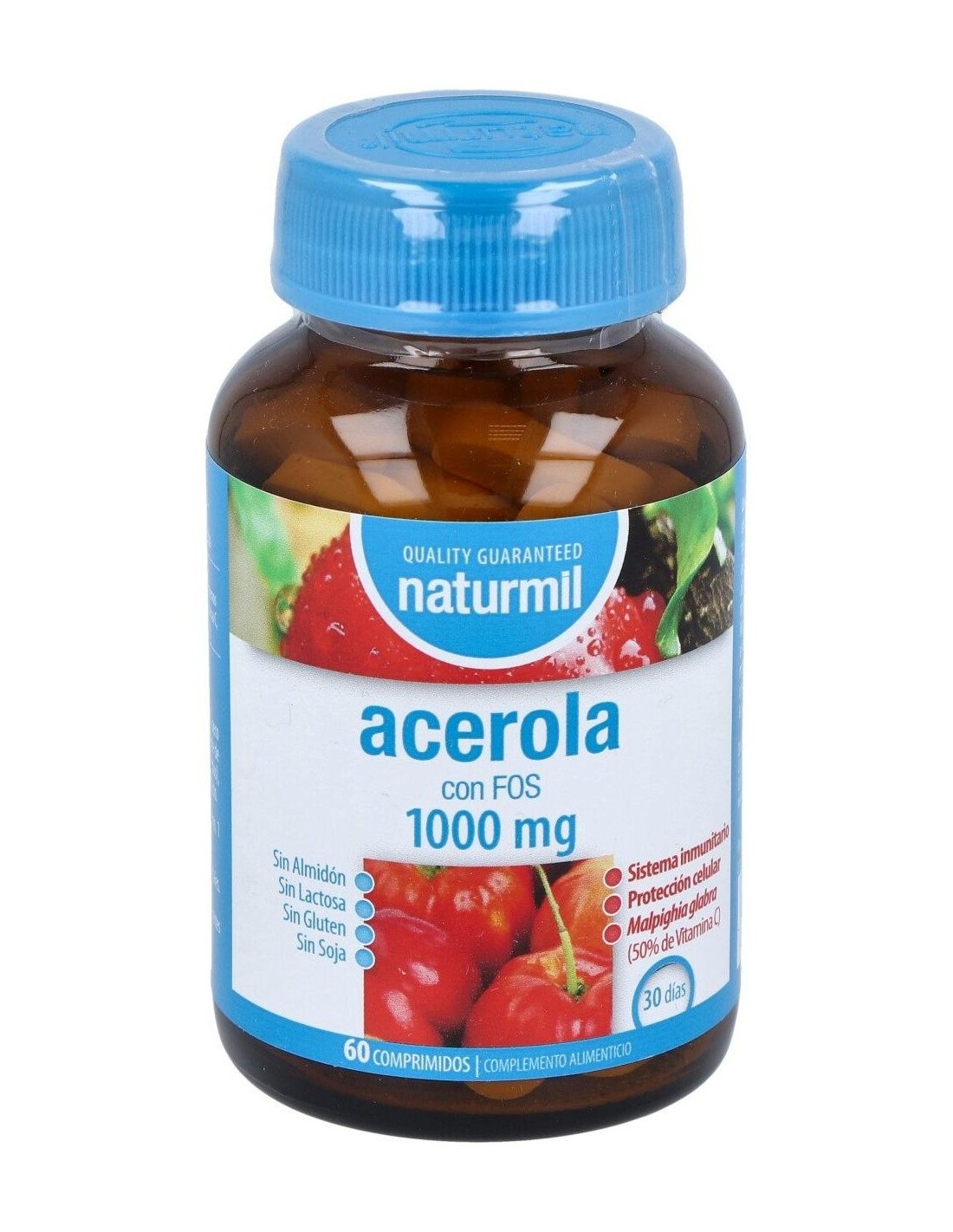 - Cada comprimido contiene 1000 mg de acerola, una fruta reconocida por su contenido natural de vitamina C, que contribuye al funcionamiento normal del sistema inmunológico.