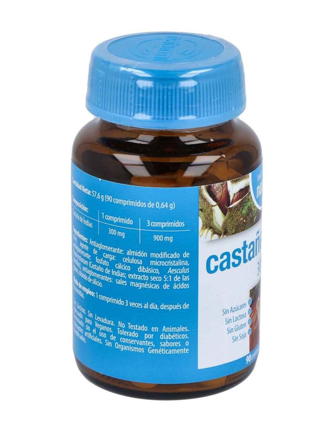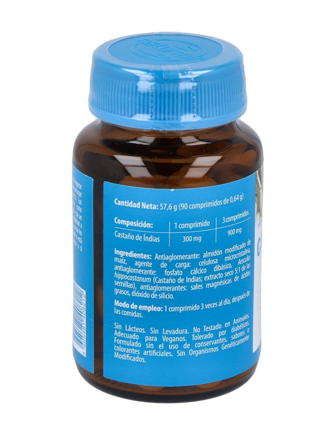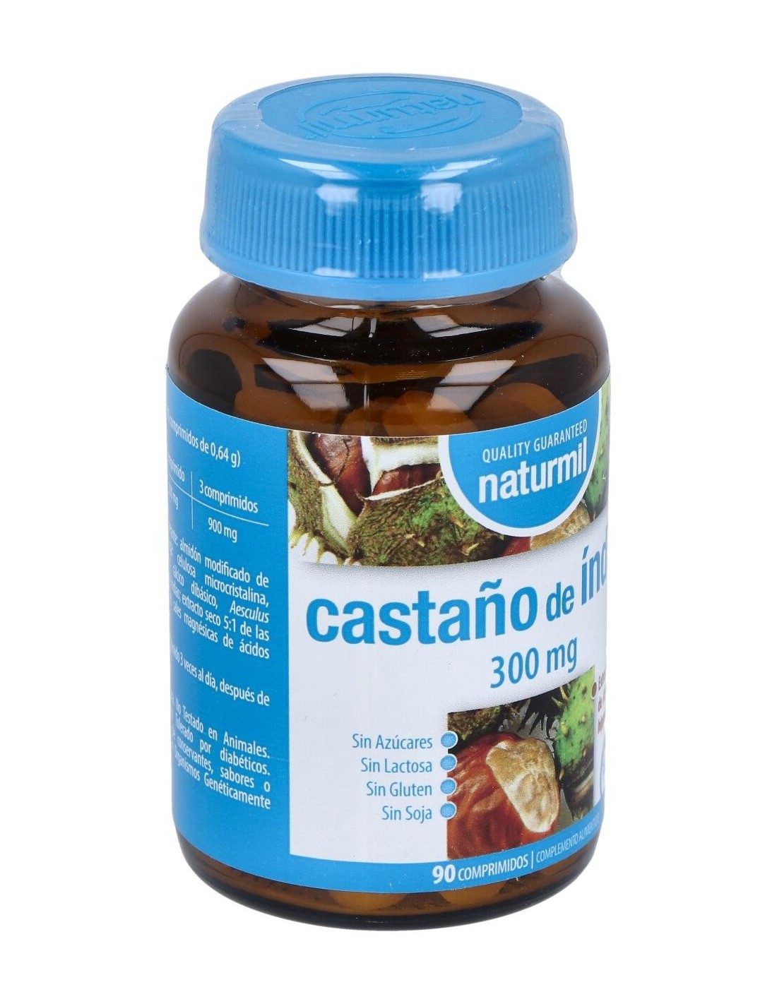- Cada comprimido contiene 300 mg de extracto de castaño de indias, reconocido por su composición natural.