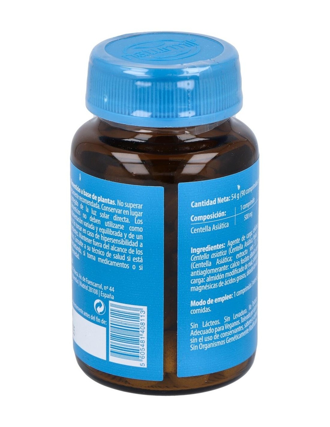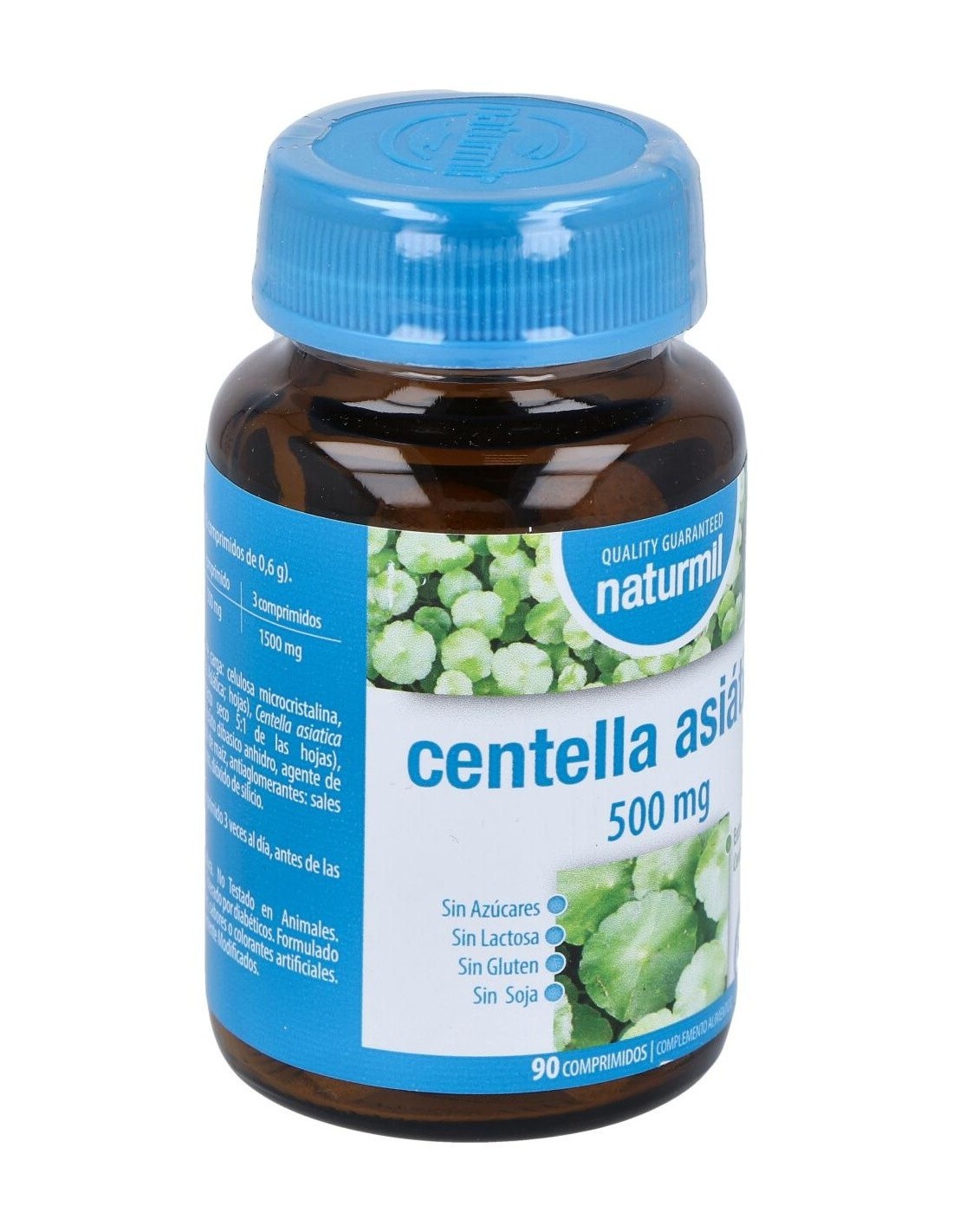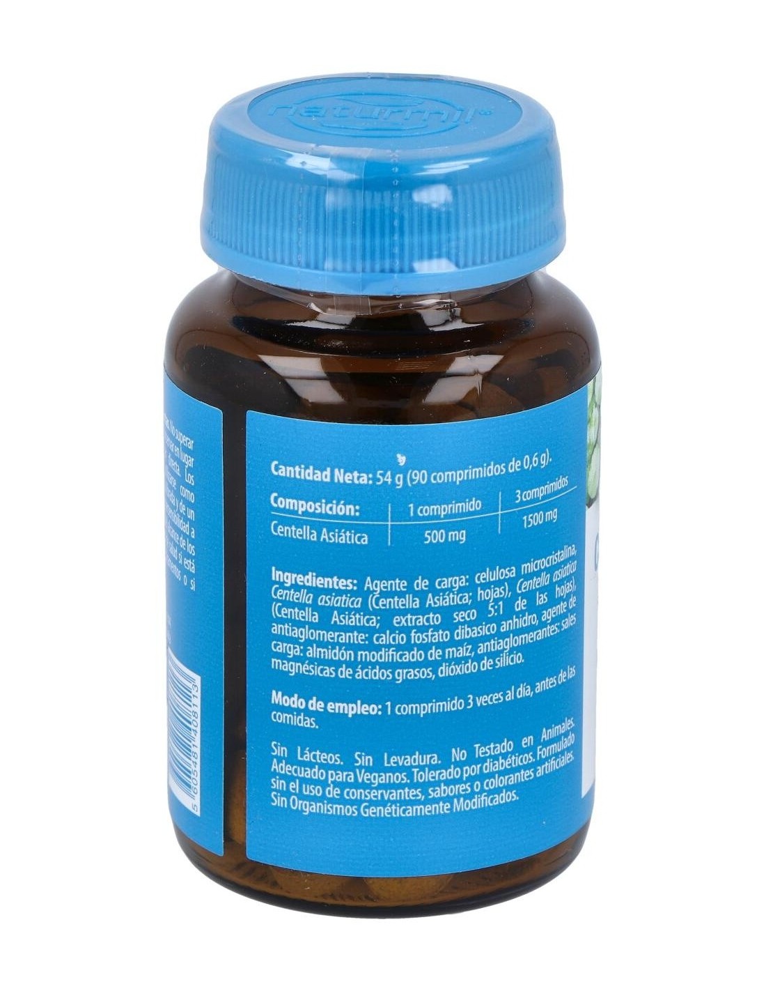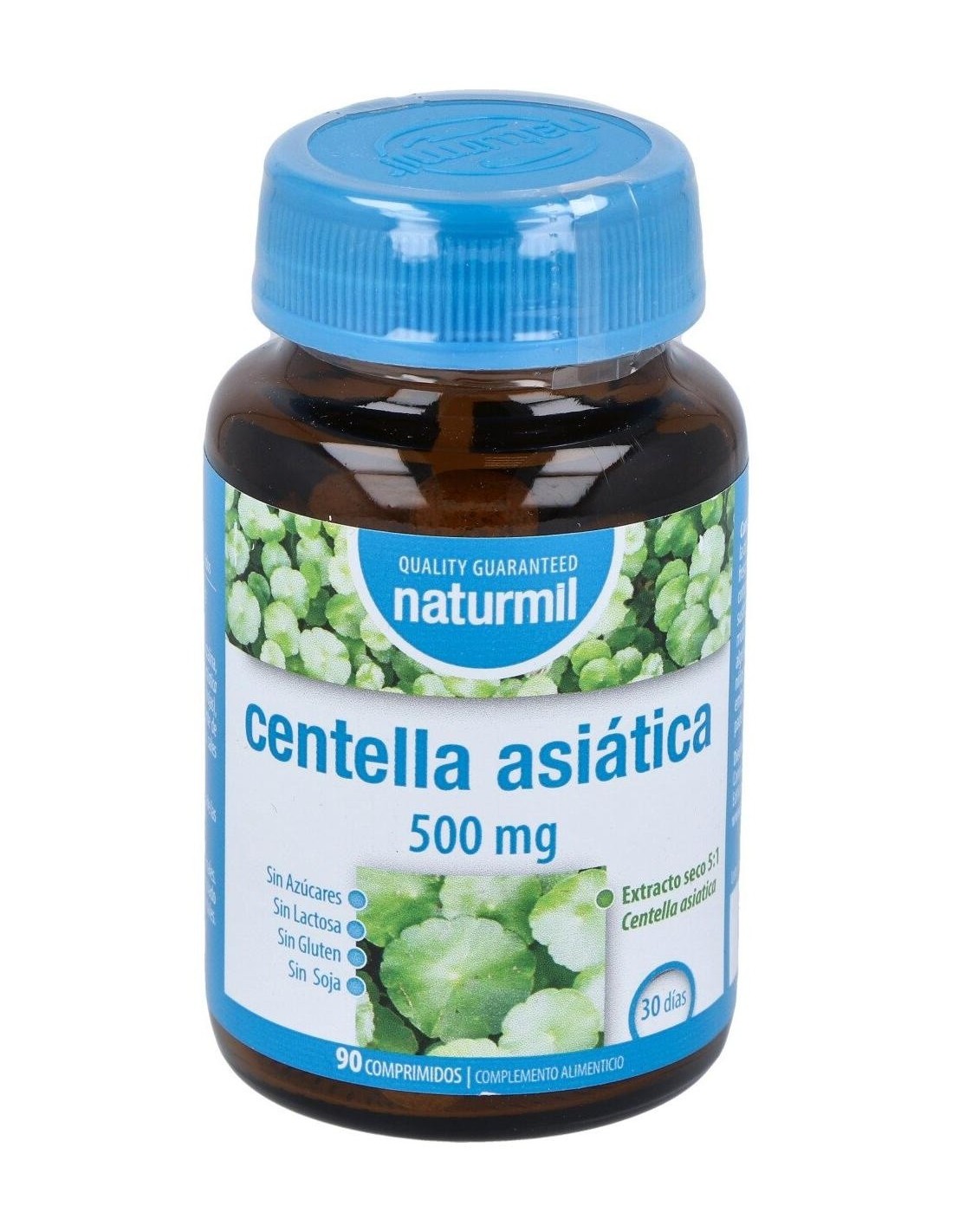 - Cada comprimido contiene 500 mg de extracto de Centella Asiática, facilitando una dosificación práctica y constante.