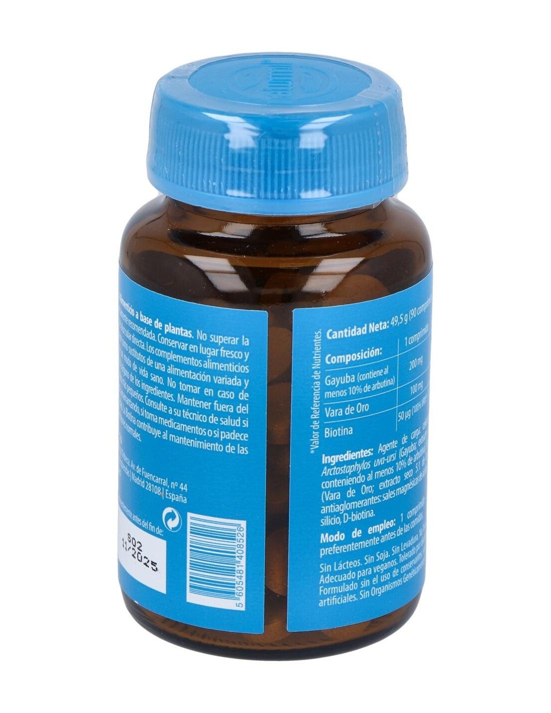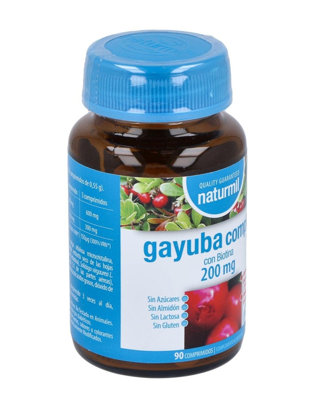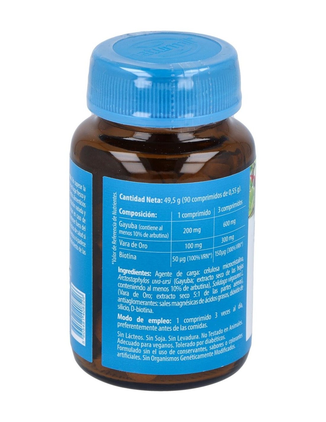 - Cada comprimido contiene 200 mg de extracto de gayuba, reconocido por su composición específica.