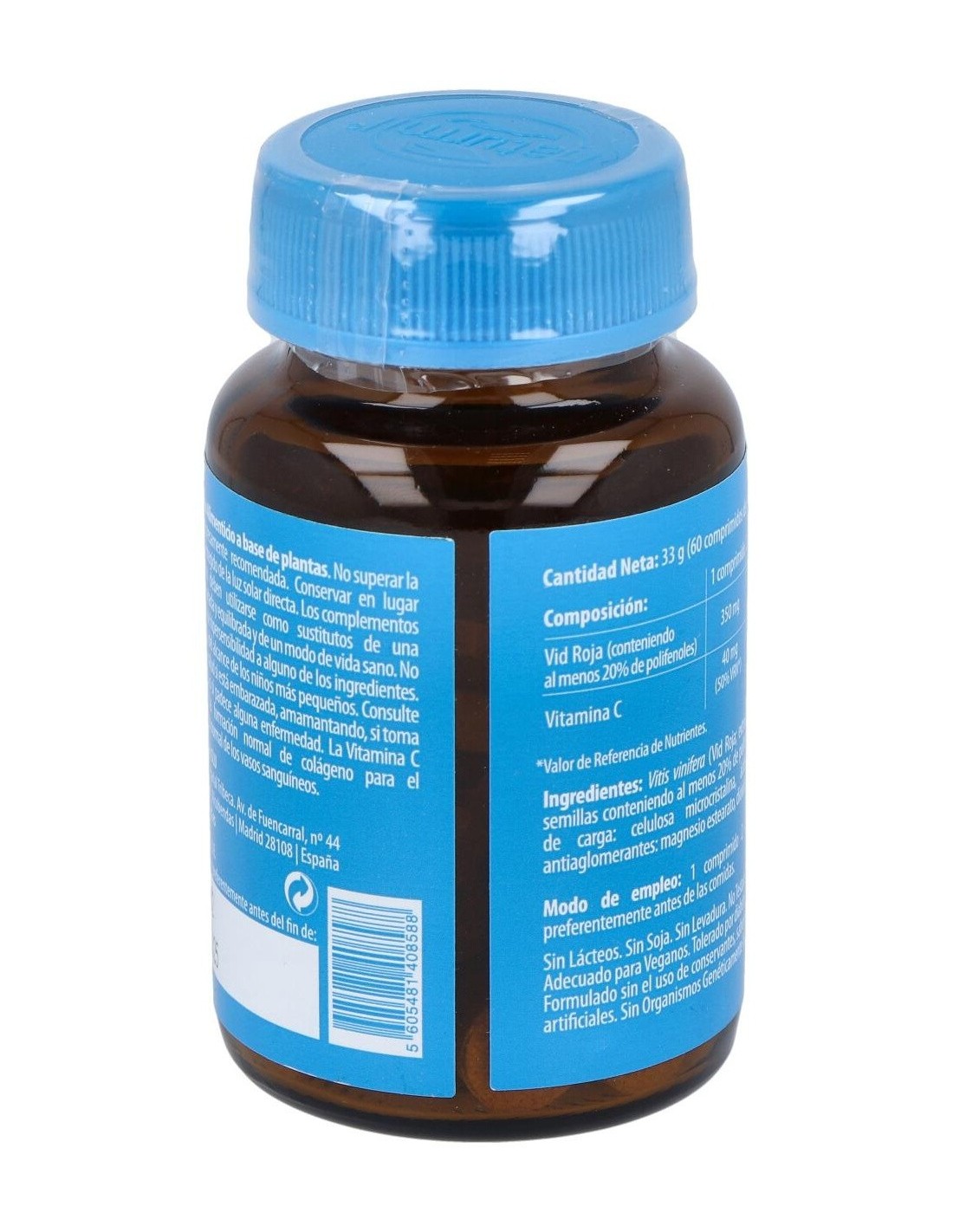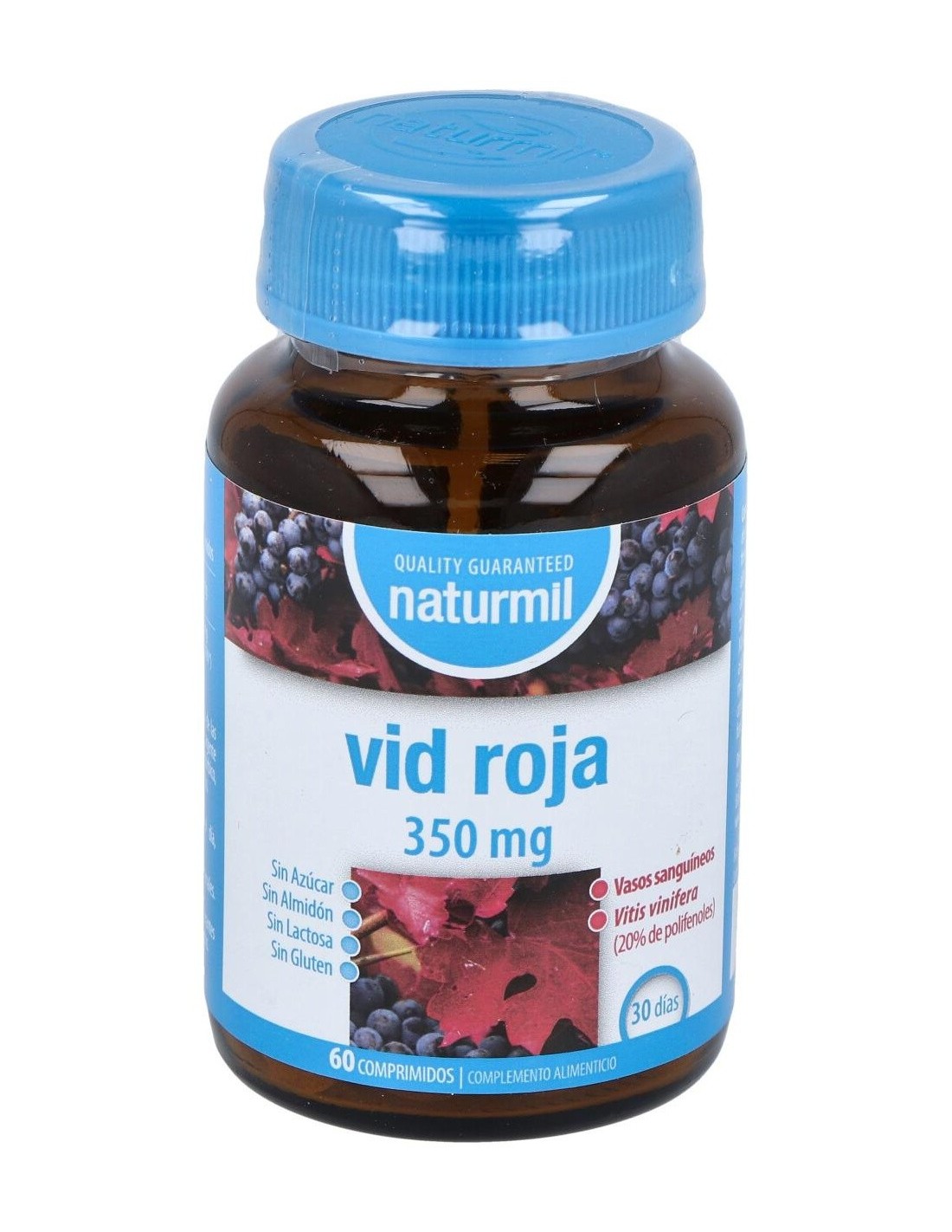 - Cada comprimido contiene 350 mg de extracto de vid roja, reconocido por su composición natural.