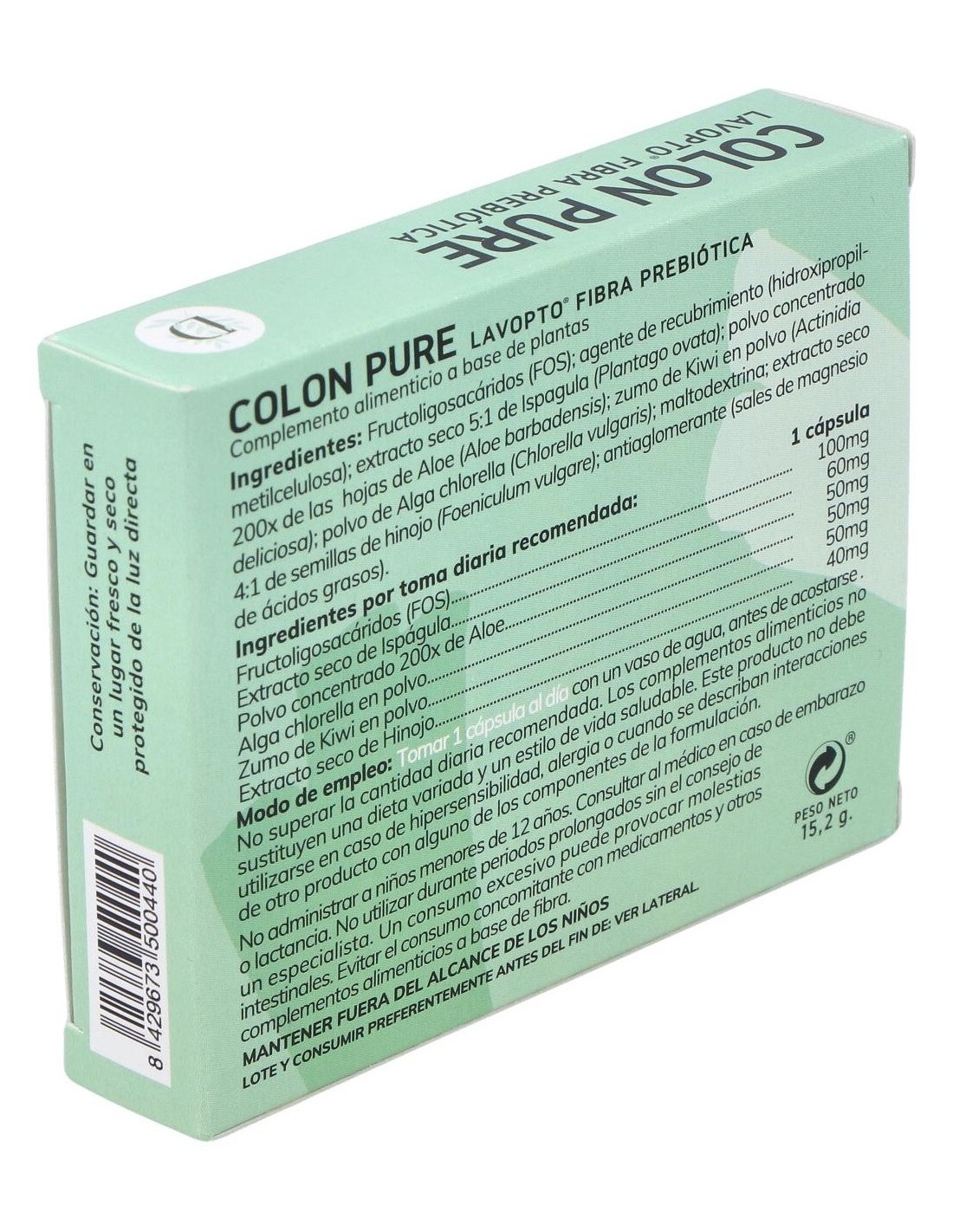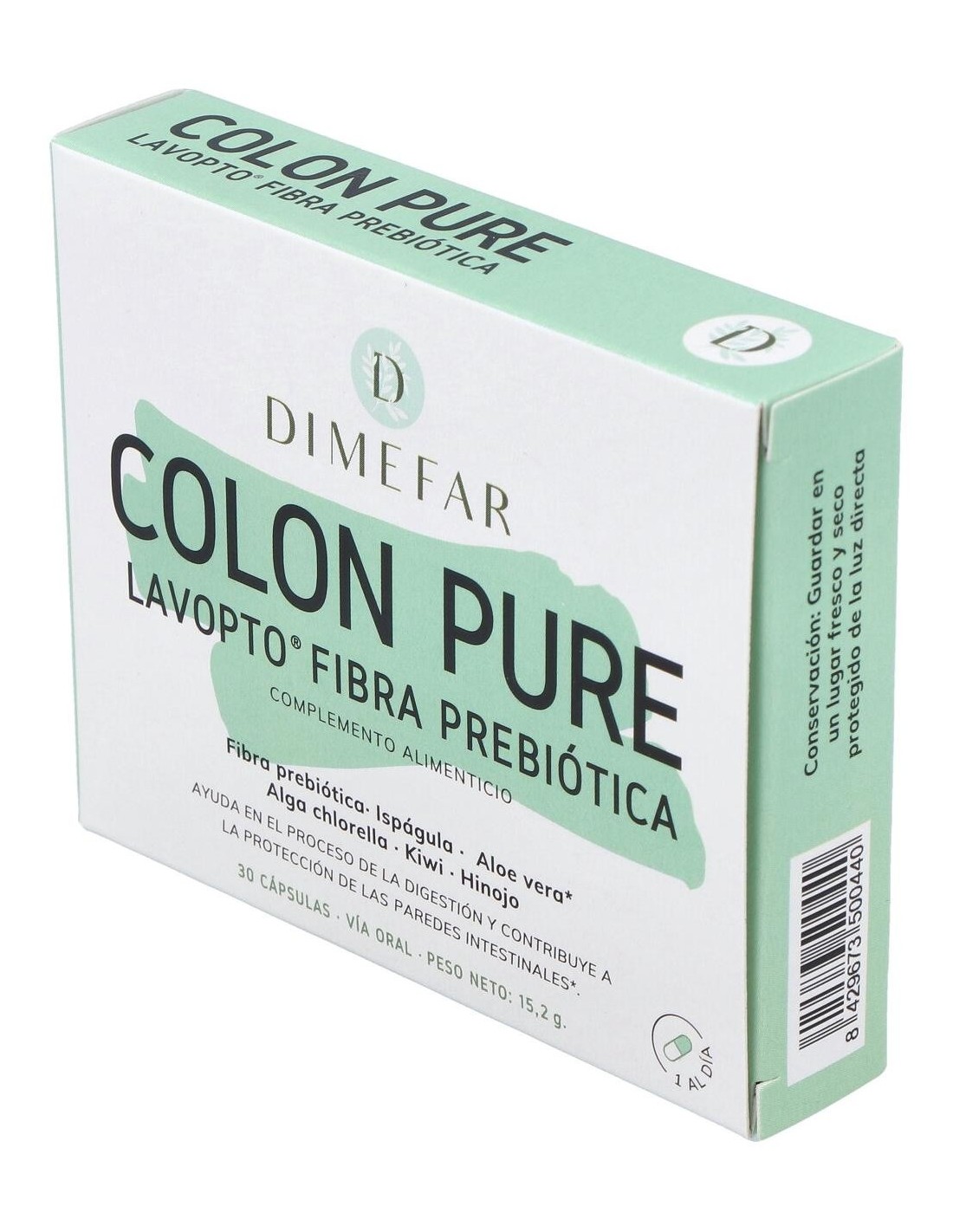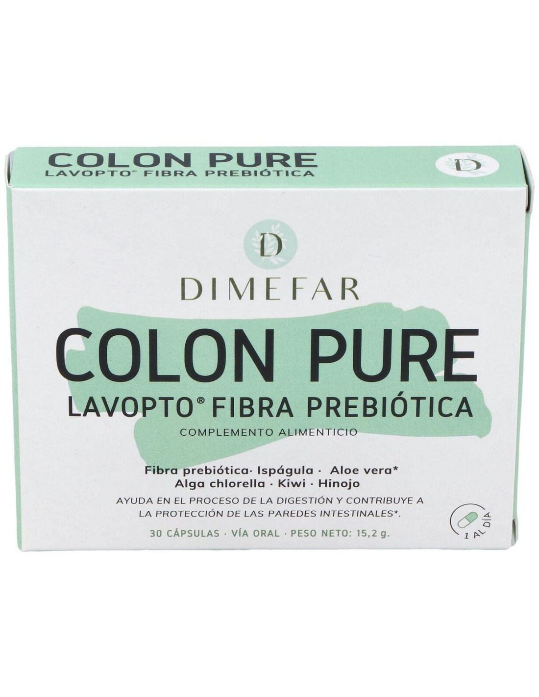 Dimefar Lavopto 30Cáps es un complemento alimenticio que aporta cinco ingredientes activos que contribuyen a detoxificar el colon y a mantenerlo en buen estado de salud. Estos componentes son aloe vera gel, fibra prebiótica, extracto de ruibarbo e hinojo y alga chlorella, la cual actúa como potente limpiadora de toxinas, metales pesados y otras sustancias indeseables.