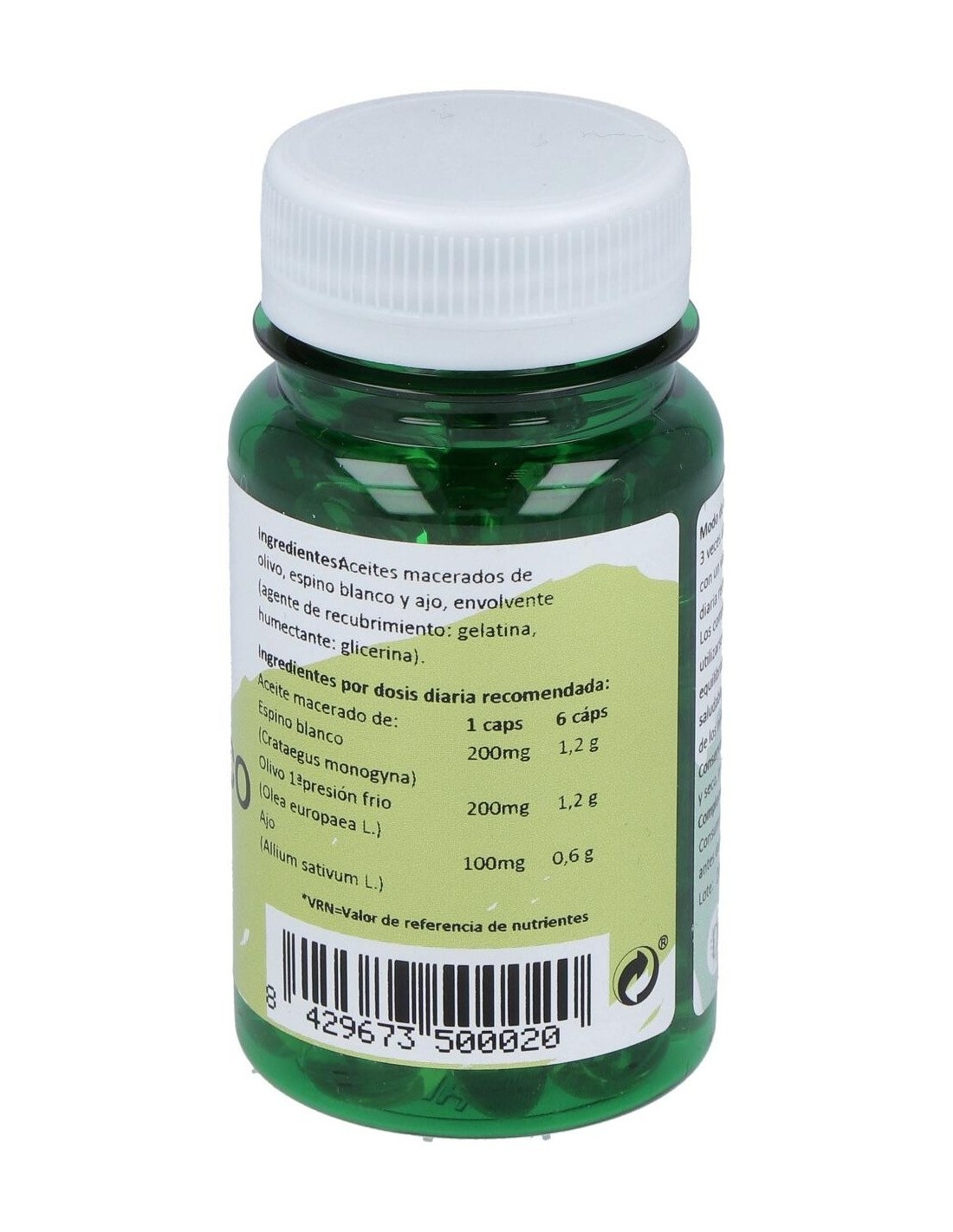 - Contiene extractos estandarizados de ajo, olivo y espino, que contribuyen a una ingesta equilibrada de compuestos vegetales.