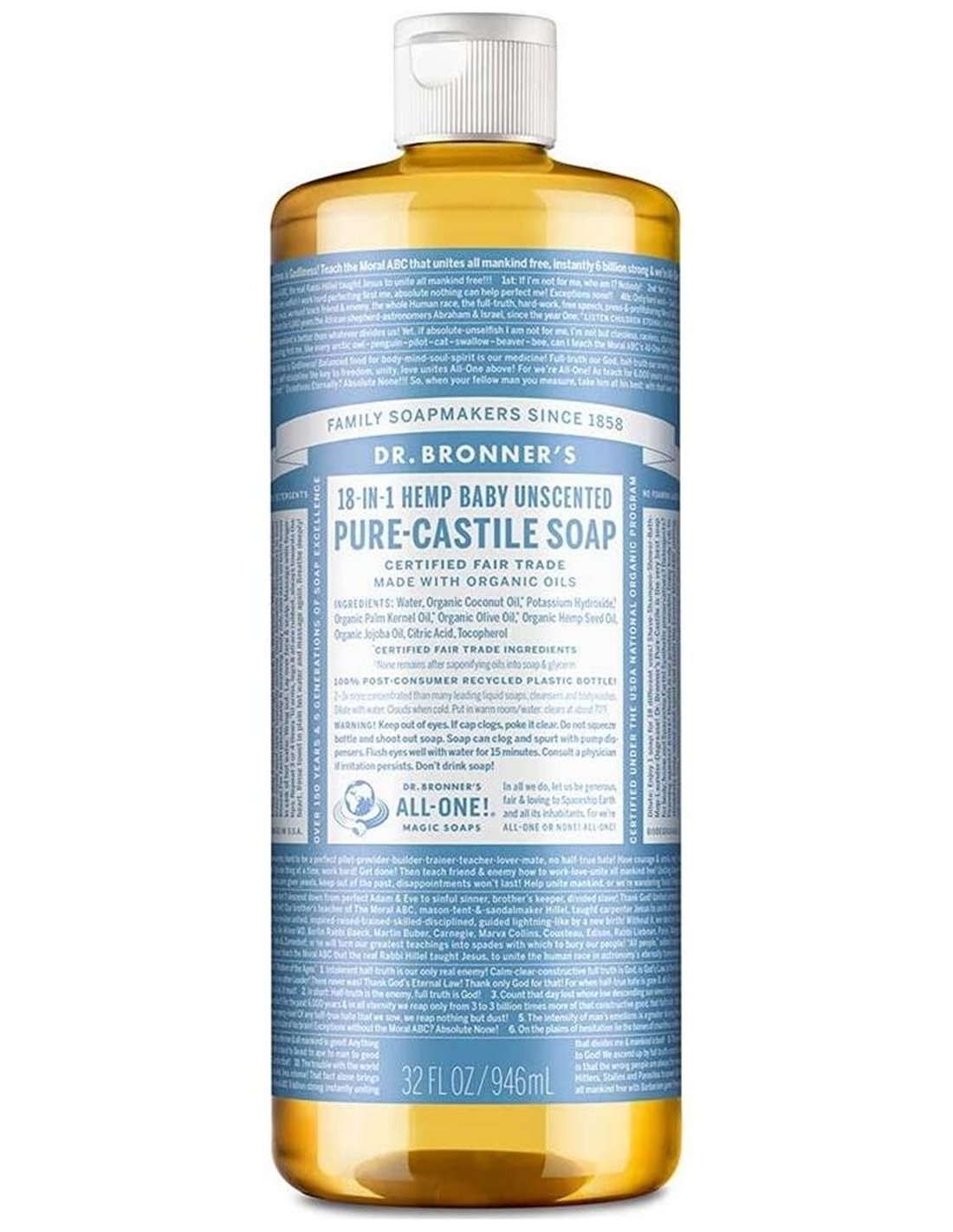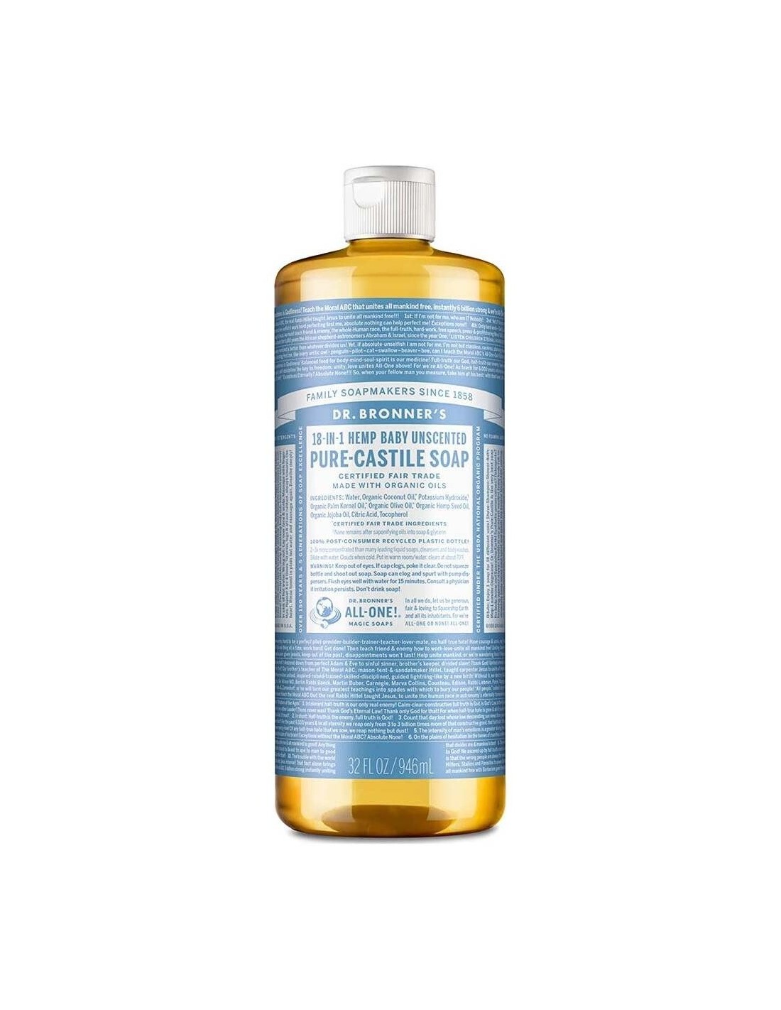 DR. BRONNER´SJabón suave y neutro ideal para niños y personas con alergias o piel sensible. Jabón suave y neutro ideal para niños y personas con alergias o piel sensible.