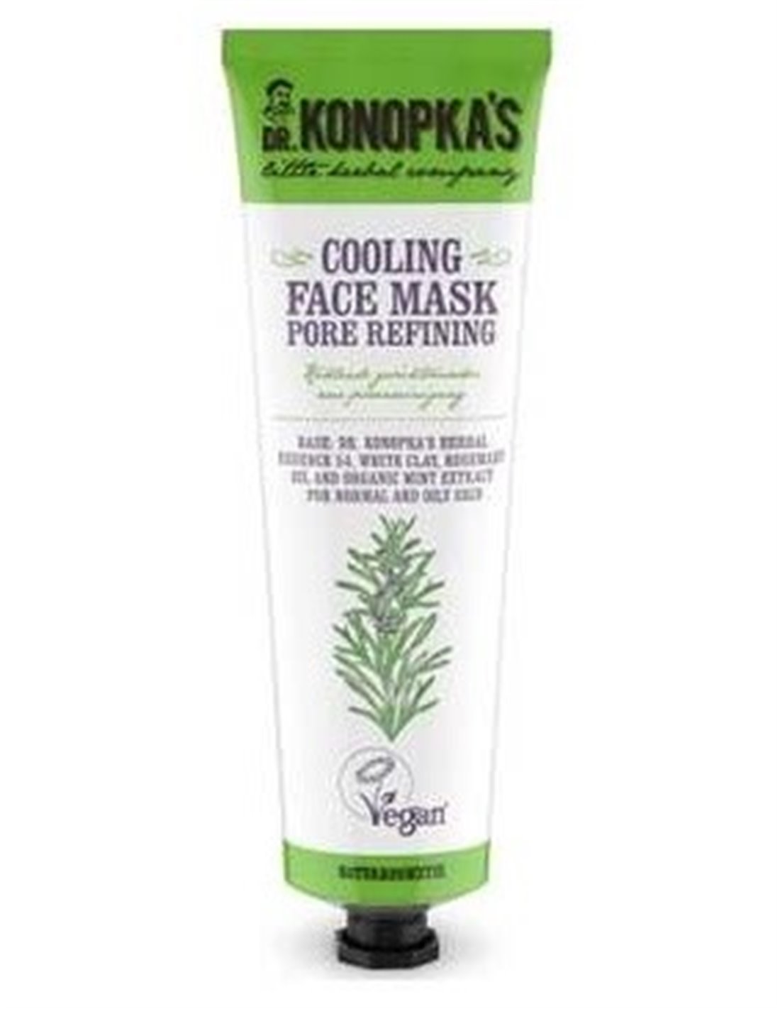DR. KONOPKA´SLa mascarilla facial refrescante para minimizar los poros del Dr. Konopkas contiene la especial esencia de hierbas Nº 54 y arcilla blanca que ayuda a limpiar los poros y a nutrir e hidratar la piel. En combinación con el aceite de romero y el extracto de menta orgánica aporta un agradable efecto refrescante, estimulando la tonicidad y la elasticidad de la piel. Producto vegano. Cosmos Natural.