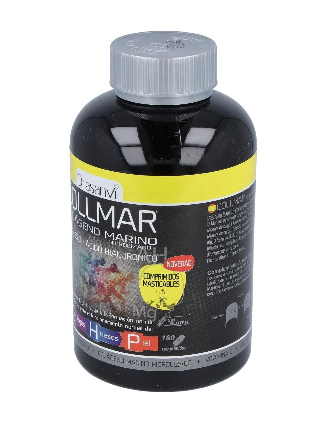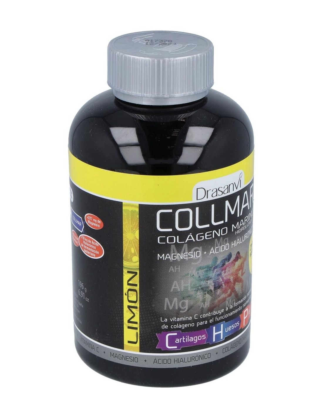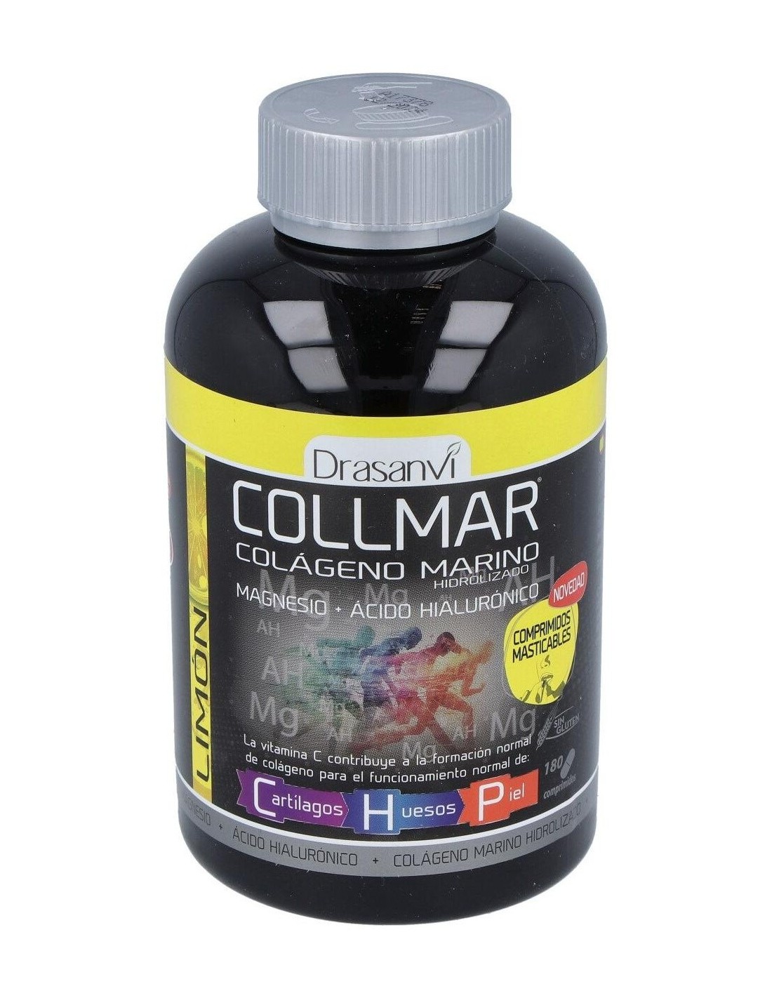 Con Colágeno Marino Hidrolizado enzimáticamente, Ácido hialurónico, Magnesio y Vitamina C, que contribuye a la formación normal de Colágeno para el funcionamiento normal de cartílago, huesos y piel.