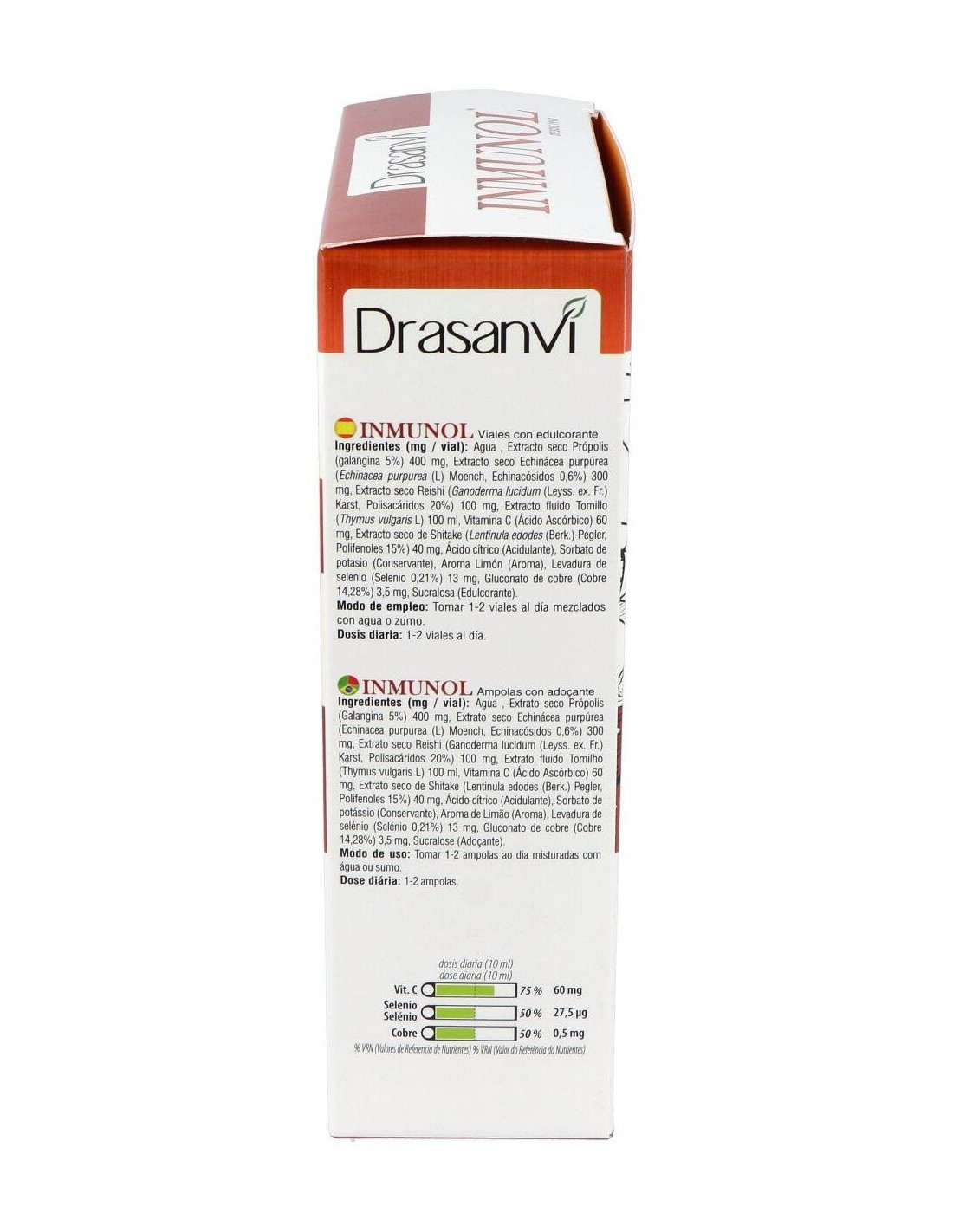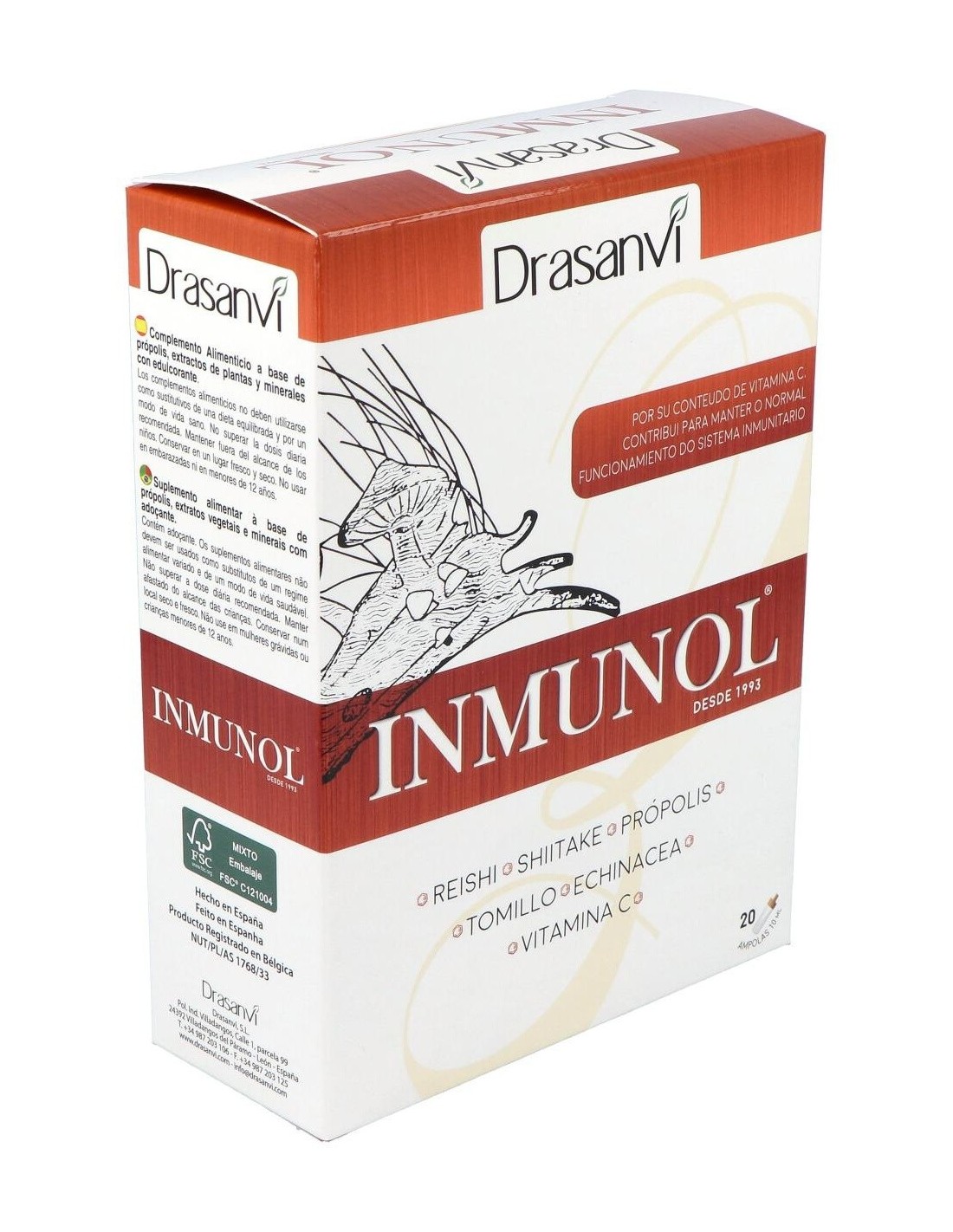 Inmunol es un complemento alimenticio formulado con hongos de utilización milenaria llamados reishi y shiitake; minerales como el cobre y el selenio; tomillo, equinácea, própolis; y vitamina C, que contribuye al mantenimiento del sistema inmunitario en condiciones normales.Composición por vial: