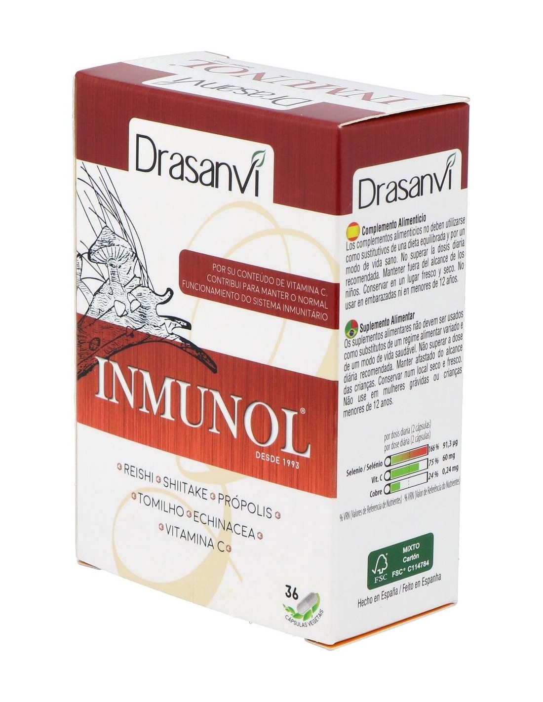 Cómo Tomar InmunolTomar de 1 a 2 cápsulas al día. Presentación Inmunol DrasanviInmunol de Drasanvi viene en un envase de 36 cápsulas, pero en Salud Natural puedes encontrar otros formatos: