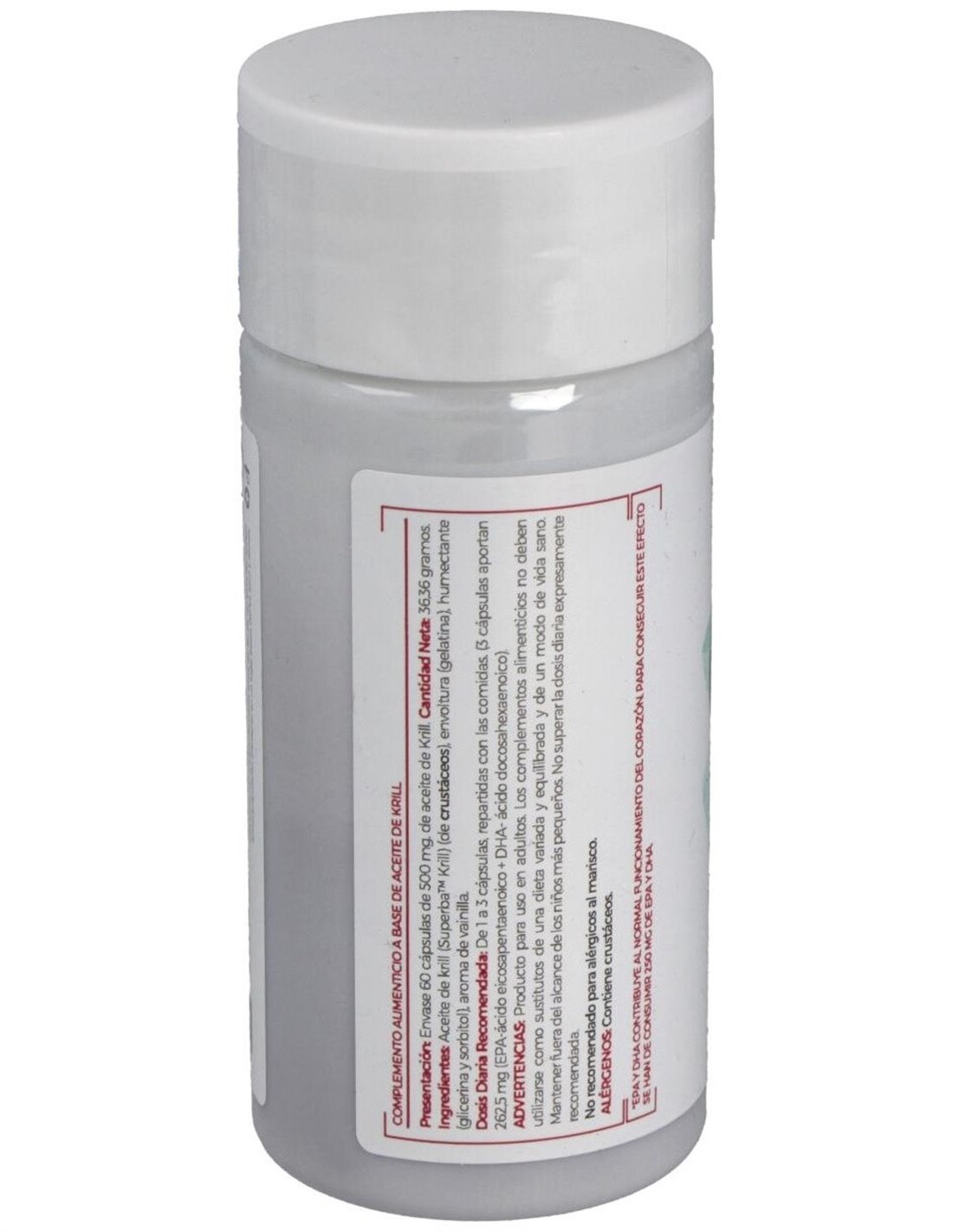 ACEITE DE KRILL (SUPERBA KRILL), ENVOLTURA (GELATINA), HUMECTANTE (GLICERINA Y SORBITOL), Y AROMA DE VAINILLA.