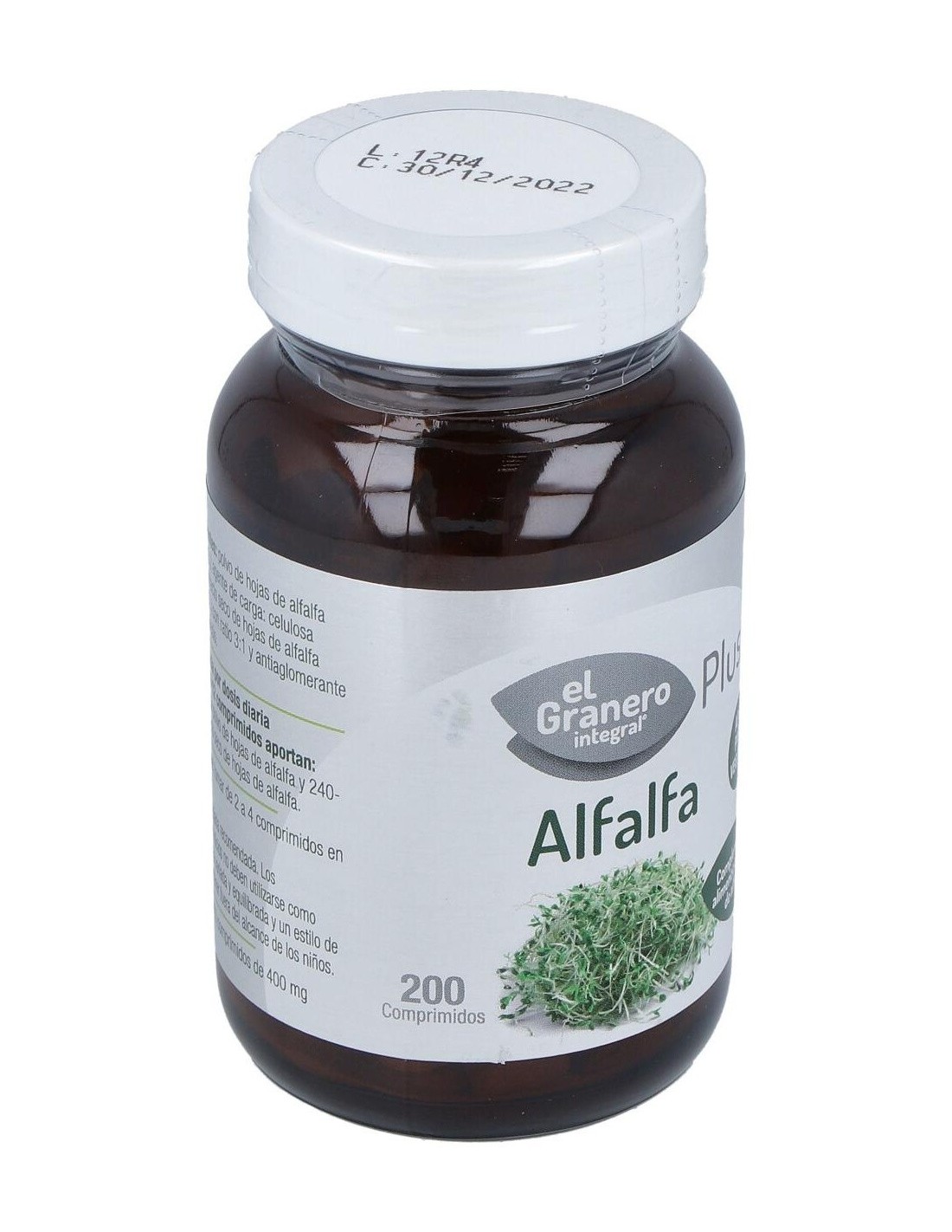 EL GRANERO INTEGRALEl Alfalfa 400Mg. 200Comp. de El Granero es un suplemento natural para personas que buscan apoyar su bienestar general, elaborado con alfalfa de alta calidad para complementar la dieta diaria.