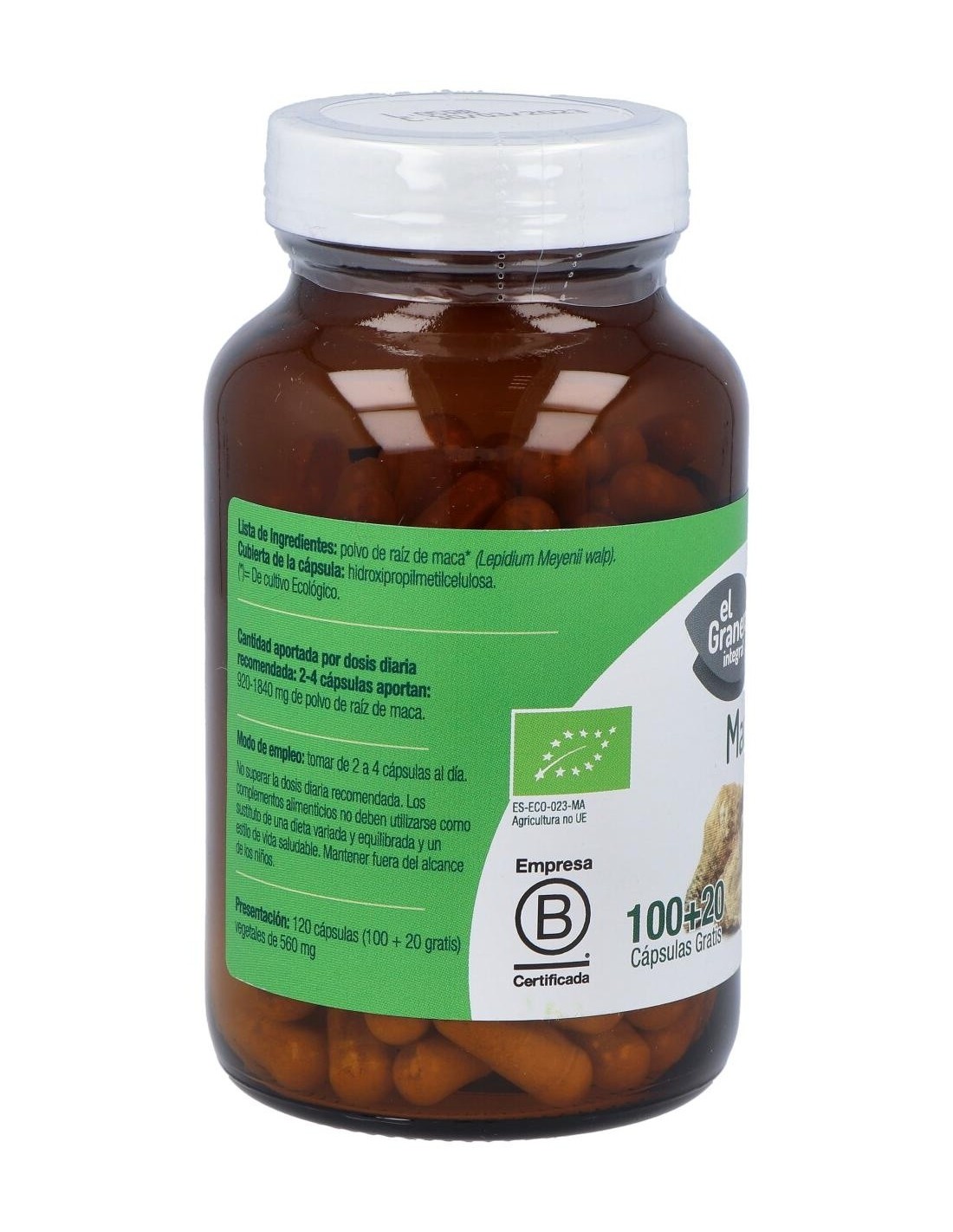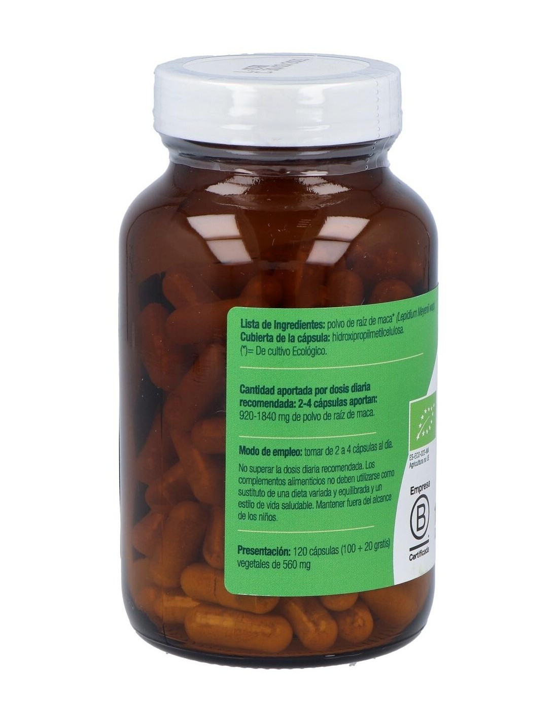- Contiene 120 cápsulas de maca cultivada de forma orgánica, facilitando una dosificación práctica y constante.