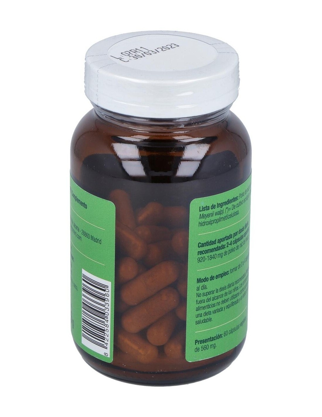 (*)=De cultivo ecológico. Modo de empleo:Tomar de 2 a 4 cápsulas al día antes de las comidas. Presentación:Bote de 60 cápsulas.