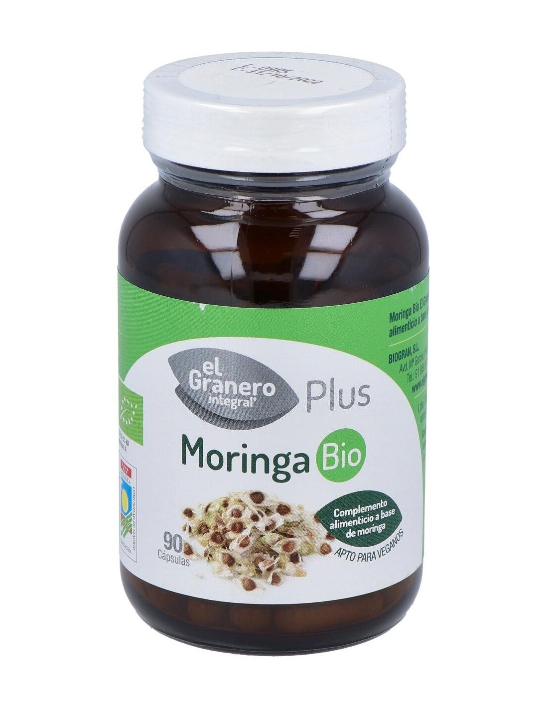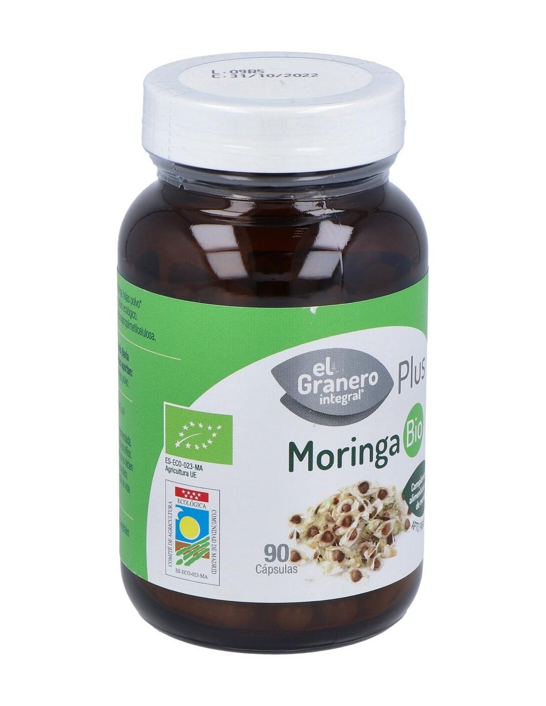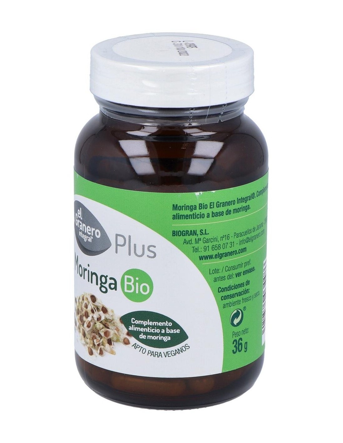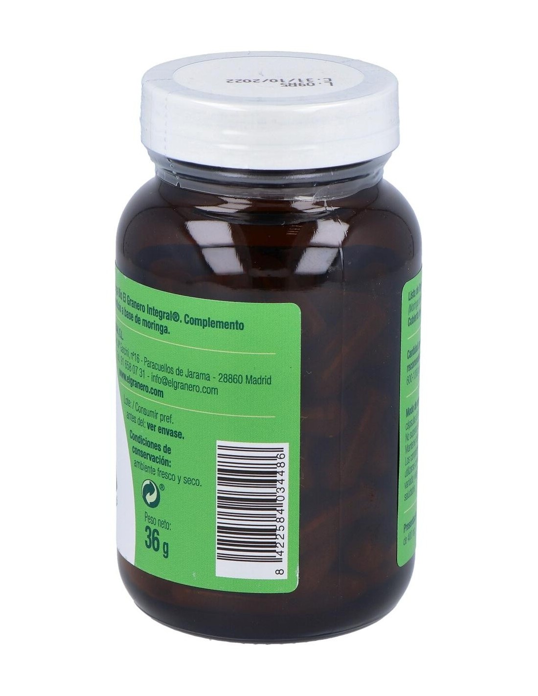 EL GRANERO INTEGRAL"DescripciónEl Granero Moringa Bio 400Mg 90cap es un complemento alimenticio en forma de cápsulas que tienen la capacidad de suplir casi por completo los requerimientos de micronutrientes necesarios para llevar una dieta saludable, lo que lo convierte en un complemento para aquellas personas que quieren asegurar sus niveles de micronutrientes. Su fórmula, además de presentar los aminoácidos esenciales, contienen gran variedad de vitaminas (A, C) y minerales (calcio, potasio, hierro , magnesio.