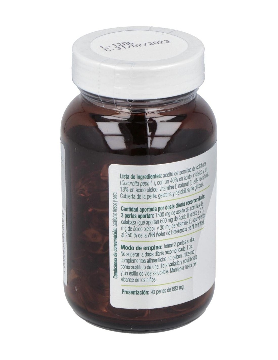 Las semillas de calabaza contienen hasta un 35% de aceite, rico en ácidos grasos insaturados como oleico y linoleico y prótidos con un contenido elevado en aminoácidos esenciales. Sus acciones más importantes son las derivadas del compuesto curcubitina, la cual bloquea la división de las células glandulares de la próstata, siendo además activa como antiinflamatorio en caso de edemas al ser capaz de interferir en la biosíntesis de protaglandinas. La Comisión E alemana autoriza su utilización en las molestias miccionales asocidas al crecimiento prostático benigno, ya que además disminuye la inflamación de la vejiga. Crecimiento de la próstata.La próstata es un órgano con crecimiento continuado durante la vida del hombre. Al crecimiento mayor de lo deseado se le conoce como hiperplasia. Se produce por un aumento relativo de los andrógenos sobre los estrógenos. Este desequilibrio produce la síntesis de factores de crecimiento celular, lo que conlleva el progresivo aumento de la glándula. Sobre este aumento influyen factores como la edad, obesidad, hipertensión, intolerancia a los glúcidos por resistencia a la insulina o alteraciones lipídicas. Puede aparecer antes de los 50 años, pero la incidencia es superior al 50% en los varones de 60 años y de un 90% en los 85 años. En algunas personas produce síntomas derivados de la comprensión del conducto de salida de la orina (uretra prostática) y del mayor esfuerzo que debe hacer la vejiga para realizar la micción: