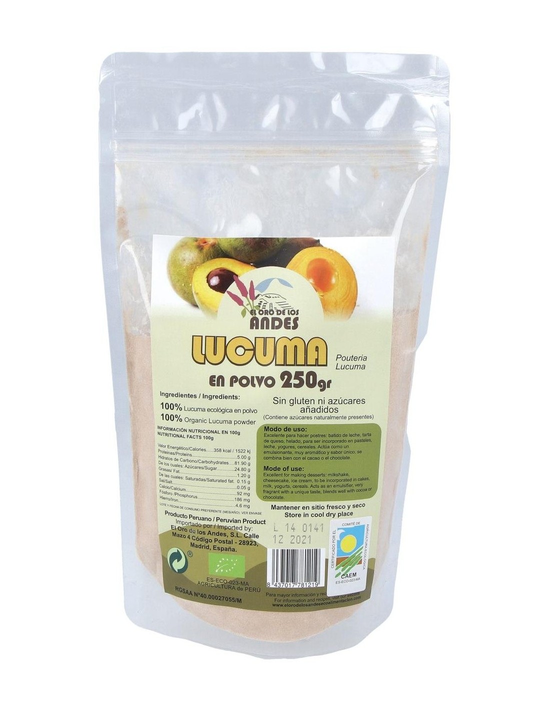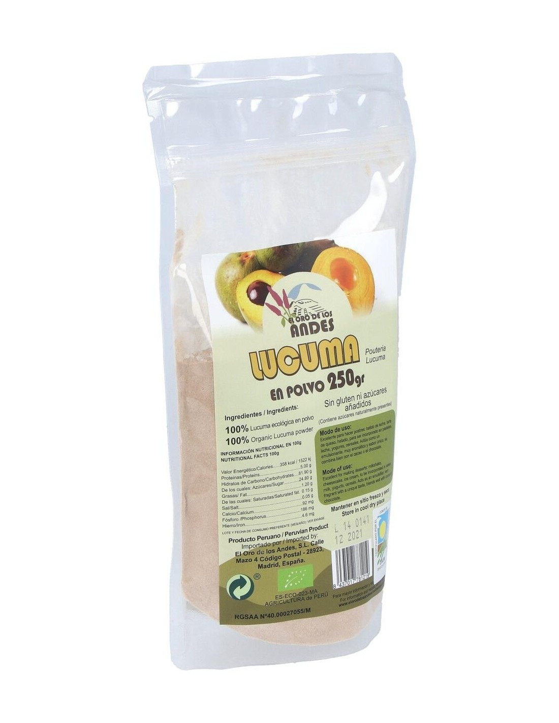 Harina De Lucuma Superalimentos 250Gr. Eco de El Oro De Los Andes