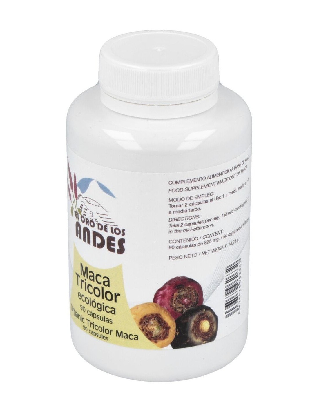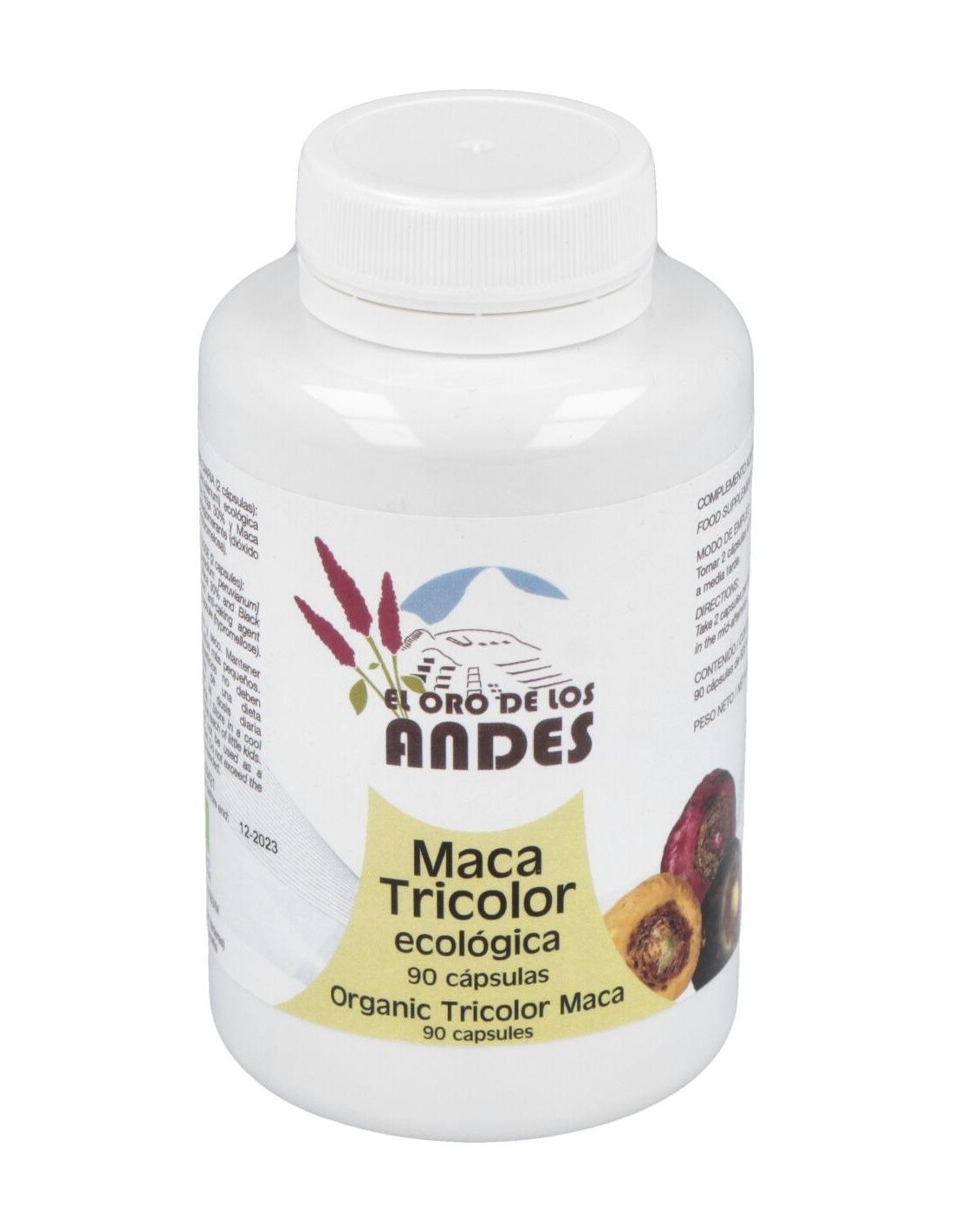 El Oro De Los Andes Maca Tricolor 700 Mg 90 Caps Bio es un complemento alimienticio en formato de cápsulas en base de Maca, que es una raíz andina a la que se le atribuyen beneficios en el rendimiento físico y mental y en el bienestar en general.