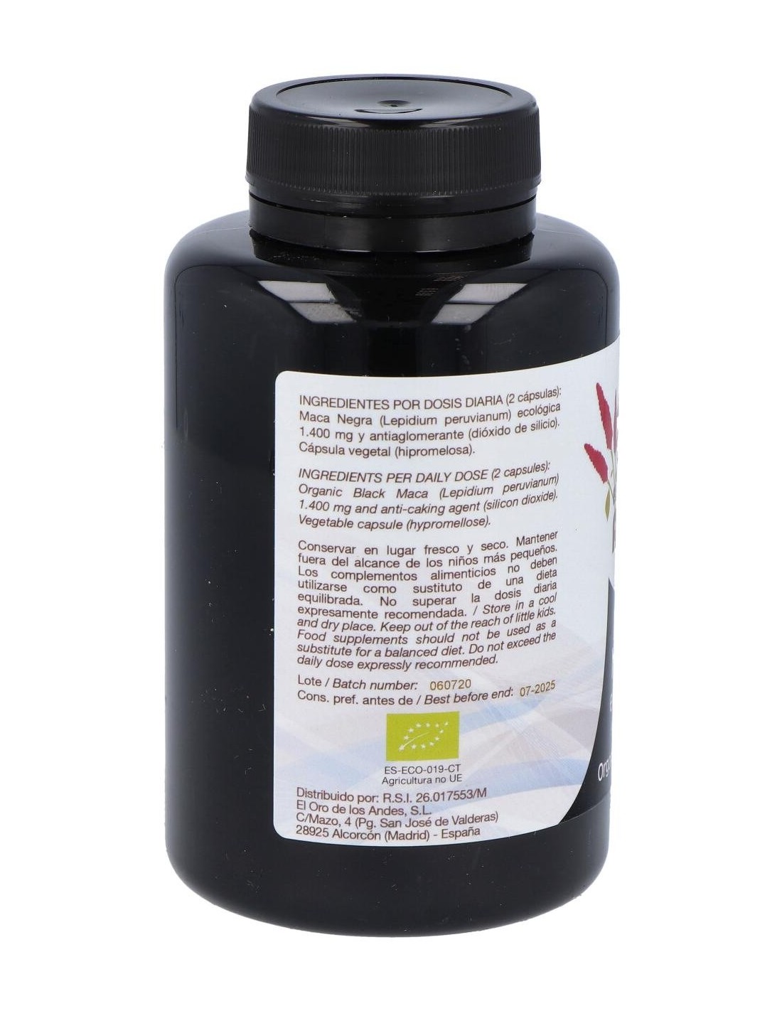 MACA NEGRA ECOLÓGICA 700 MG. POR CÁPSULA. EXCIPIENTES: DIÓXIDO DE SILICIO. CÁPSULA VEGETAL.