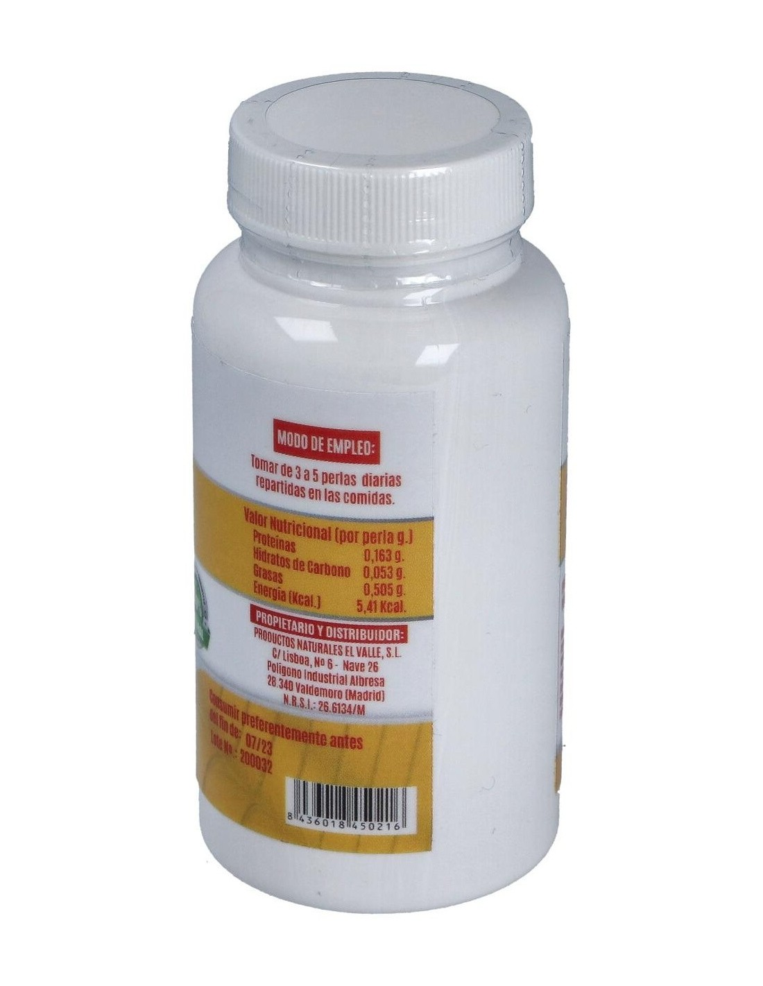 Tomar 3-5 perlas al día con bastante líquido, antes de las comidas.