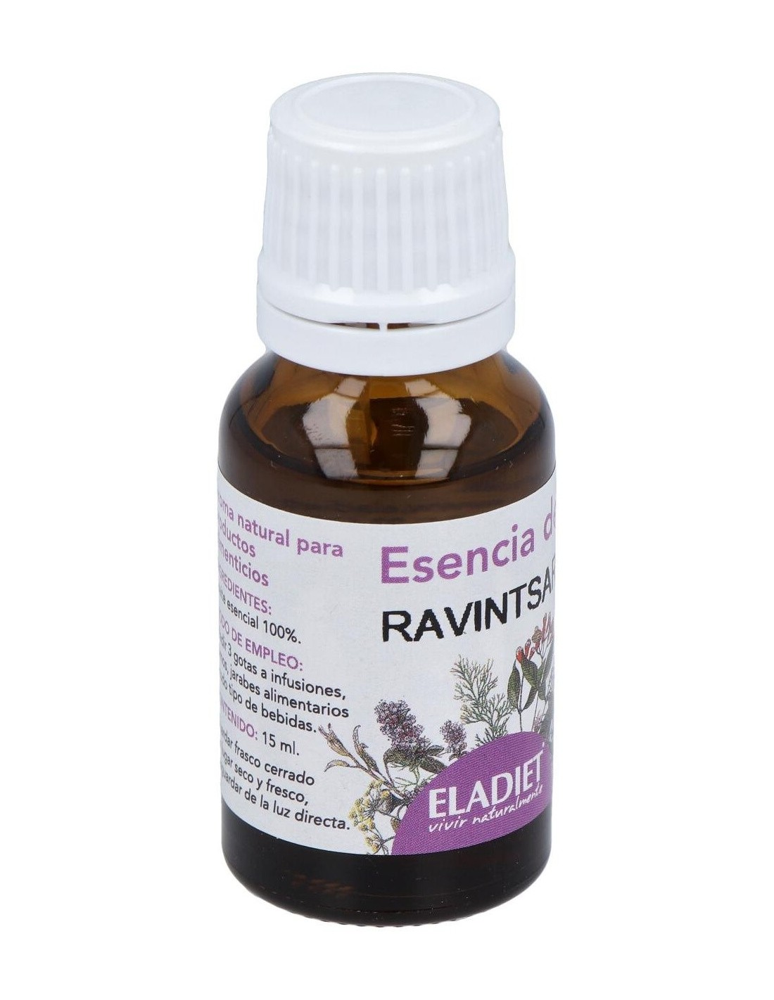 ELADIETEladiet Esencia Ravintsara 15ml aceite esencial de ravintsara, cinnamomum camphora. extracto puro, íntegro y natural, obtenido de las hojas y ramas de la planta originaria de madagascar.