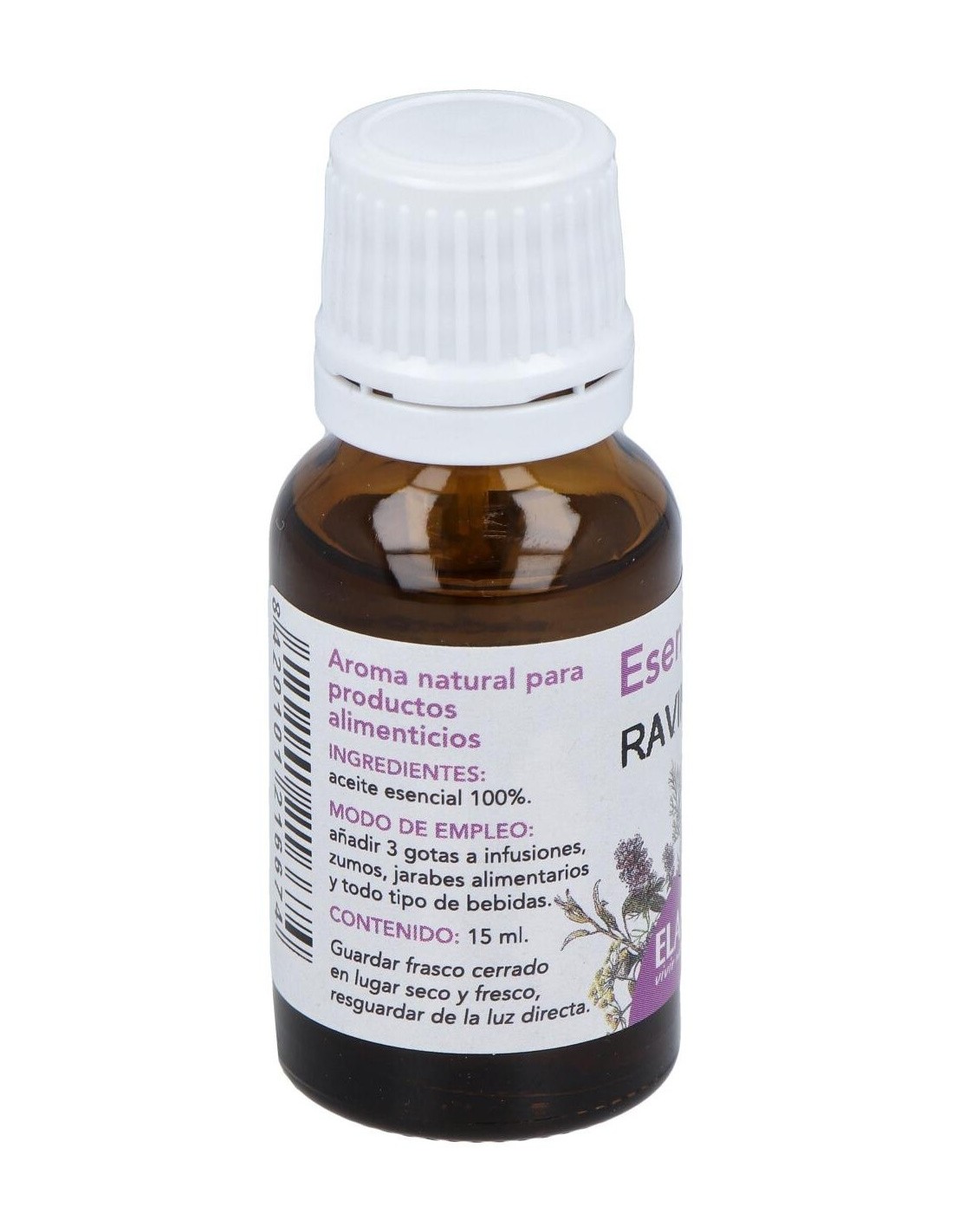 Eladiet Esencia Ravintsara 15ml aceite esencial de ravintsara, cinnamomum camphora. extracto puro, íntegro y natural, obtenido de las hojas y ramas de la planta originaria de madagascar.