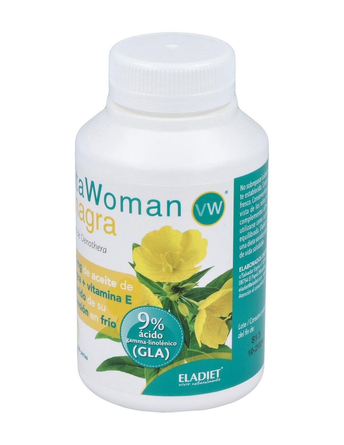 ELADIETSuplemento a base de aceite de onagra y vitamina E obtenido de su primera presión en frío. Aporta GLA.