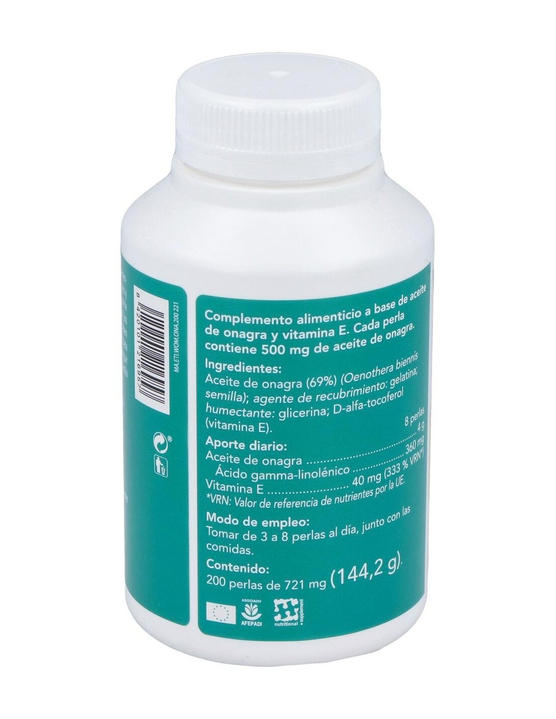 4 g de aceite de onagra y 20 mg de vitamina E.