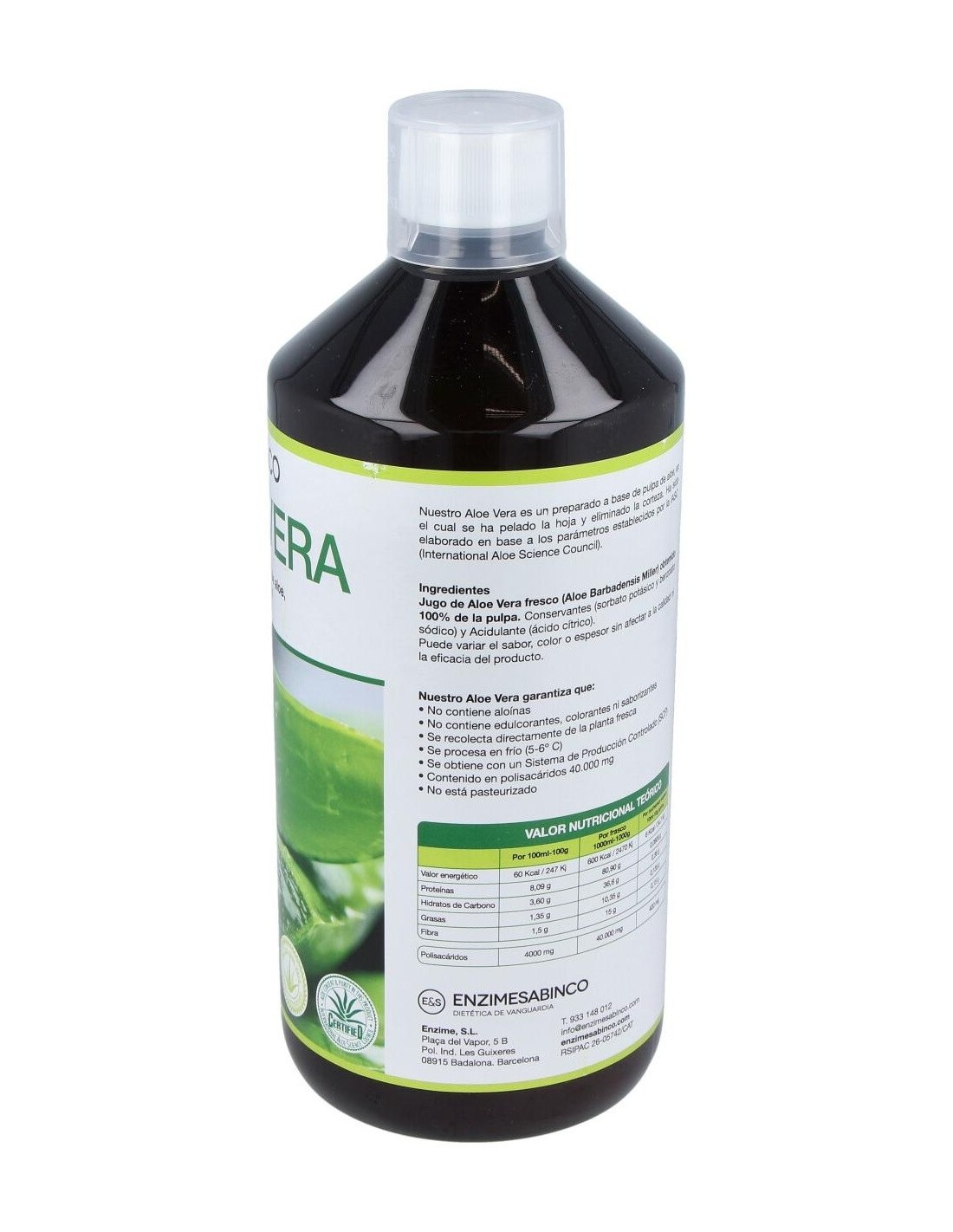 Jugo de aloe vera 100% obtenido de hojas procedentes de agricultura ecológica. Tiene propiedades depurativas, digestivas y diuréticas, es un coadyuvante en tratamientos de pérdida de peso. Aporta al organismo polisacáridos, vitaminas A, B1, B2, B6 y C, minerales como yodo, cobre, hierro, zinc, fósforo, azufre, manganeso, magnesio y calcio. Contiene aminoácidos esenciales para la salud del cuerpo.