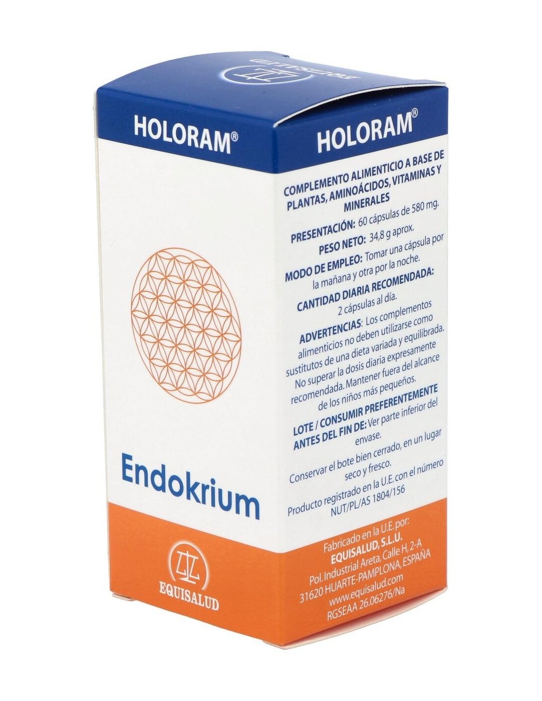 HoloRam Endokrium estimula los procesos bioenergéticos naturales de regulación neuroendocrina, especialmente afectados durante los procesos de transición hormonal, como el climaterio y los síndromes de tensión premenstrual. Proporciona la información necesaria para la activación de la fisiología energética de restauración del equilibrio energético en los períodos de transición hormonal. Los componentes de HoloRam Endokrium han sido cuidadosamente seleccionados por sus efectos sinérgicos sobre la regulación endocrina, de gran importancia en los complejos sintomáticos ligados a los cambios hormonales. Cada uno de sus componentes tiene una acción sistémica que involucra la regulación armónica de funciones esenciales para el mantenimiento de la homeostasis energética del sistema endocrino y sus repercusiones sobre el metabolismo, y la regulación neurovascular.