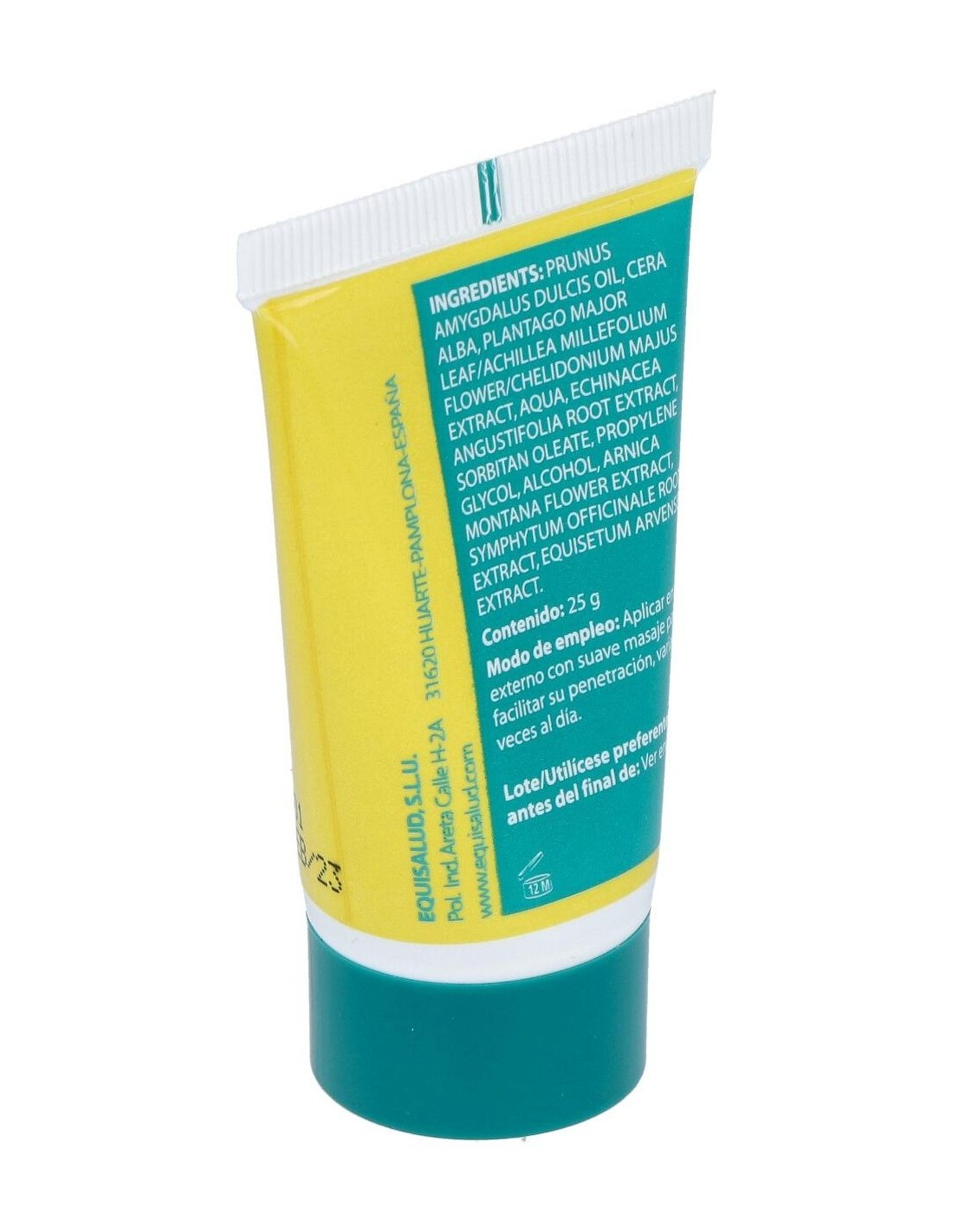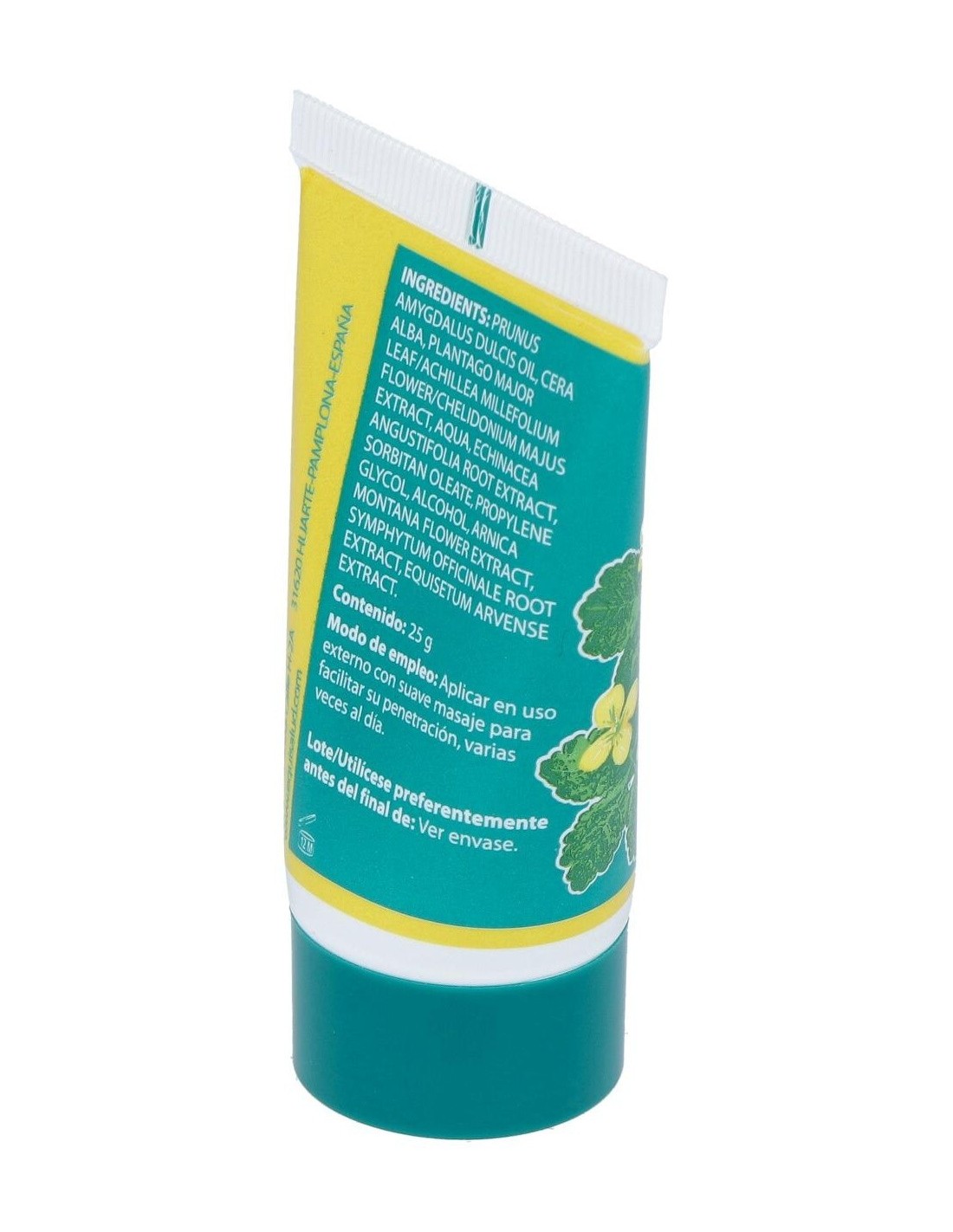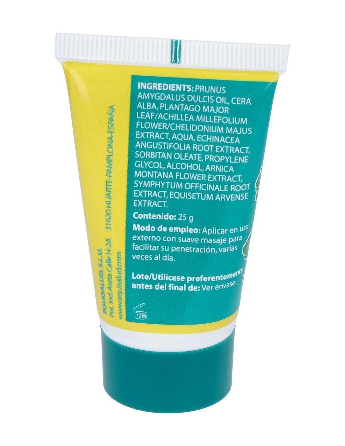 Llantén, Celidonia, Milenrama, Cola de caballo, Consuelda, Equinácea, Árnica, Aceite de almendras dulces, Cera virgen de abejas.