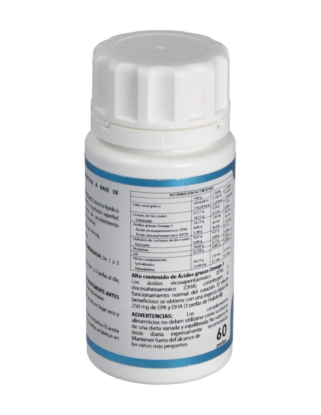 Ingredientes por perla:500 mg de aceite de krill antártico (140 mg de EPA y 65 mg de DHA). Modo de empleo:Tomar 1 ó 2 perlas al día con el desayuno. Presentación:Envase de 60 perlas.