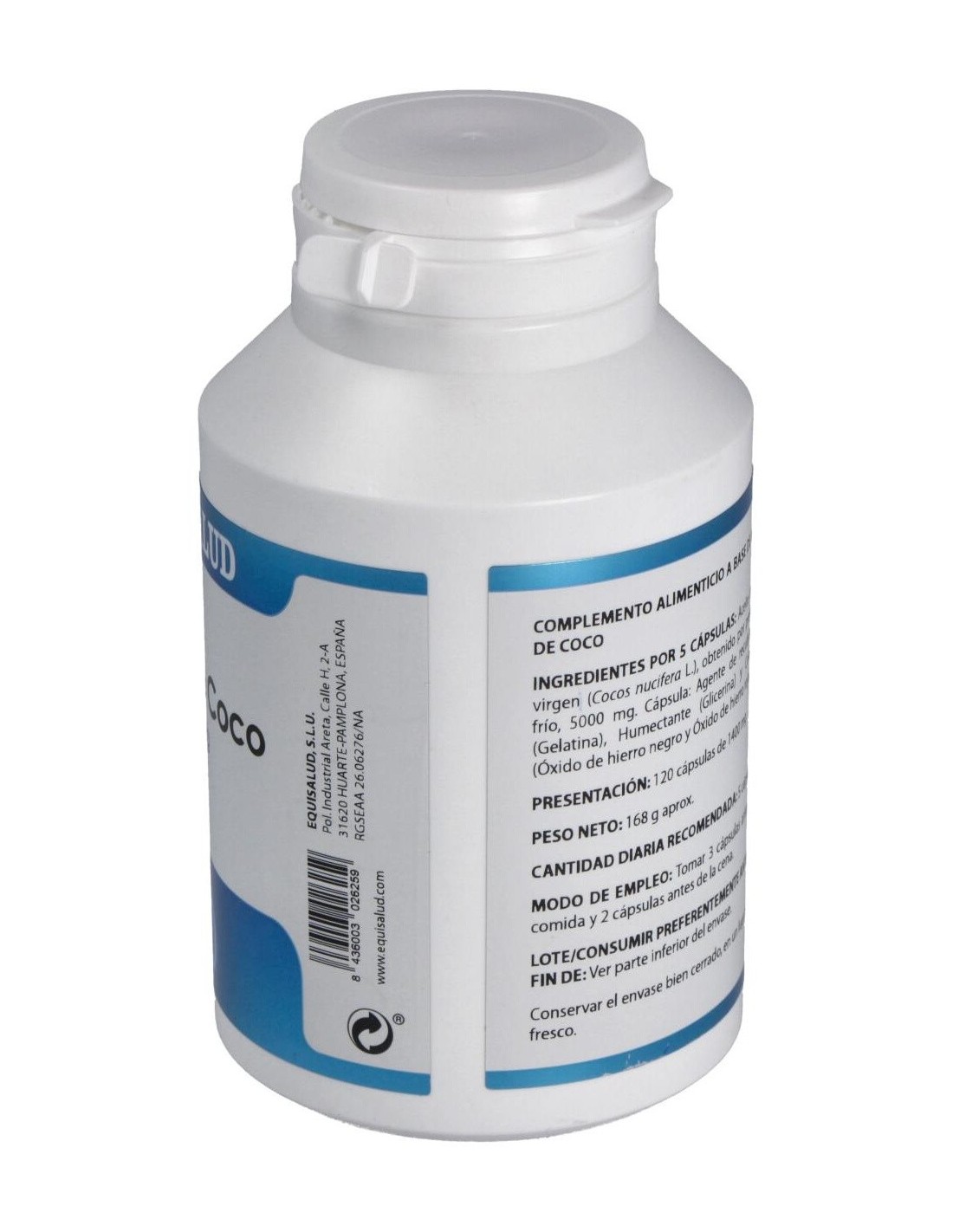 El aceite de coco también tiene otras interesantes propiedades: es un protector cardíaco, estimula ligeramente el tiroides y ayuda a tener controlado el colesterol y los triglicéridos. Composición por perla:1.000 mg de aceite de coco virgen y orgánico. Modo de empleo:Tomar 5 perlas al día, 3 antes de comer y 2 antes de cenar. Presentación:Bote de 120 perlas.