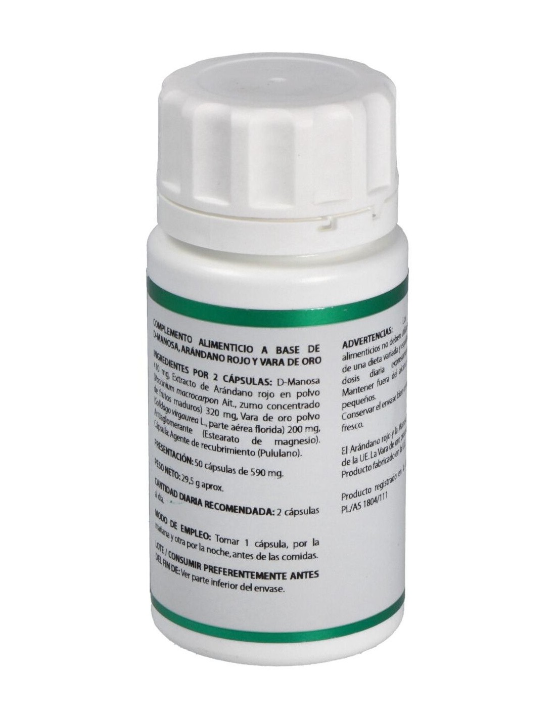D-Manosa: El uso de antiobióticos u otros antisépticos en las infecciones de orina, aunque efectivos, tienden a desequilibrar el medio, ya que su actuación no es selectiva y destruyen la flora bacteriana beneficiosa. La D-Manosa es un azúcar simple, hexosa monosacárido, que existe de forma natural en diversos árboles, en bayas y frutos, como los arándanos rojos o la piña. Se excreta rápidamente por la orina y tiene la propiedad de adherirse a las bacterias, actuando de forma semejante al arándano, evitando así la fijación de éstas en las paredes, siendo eliminadas por el flujo de orina hacia el exterior.