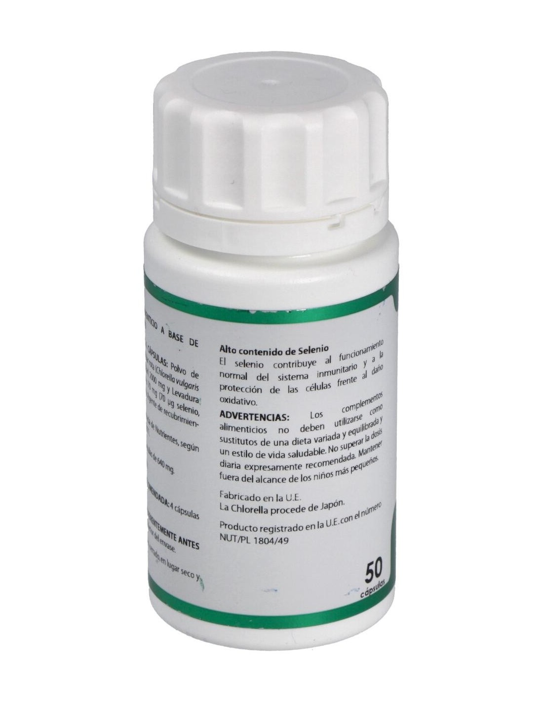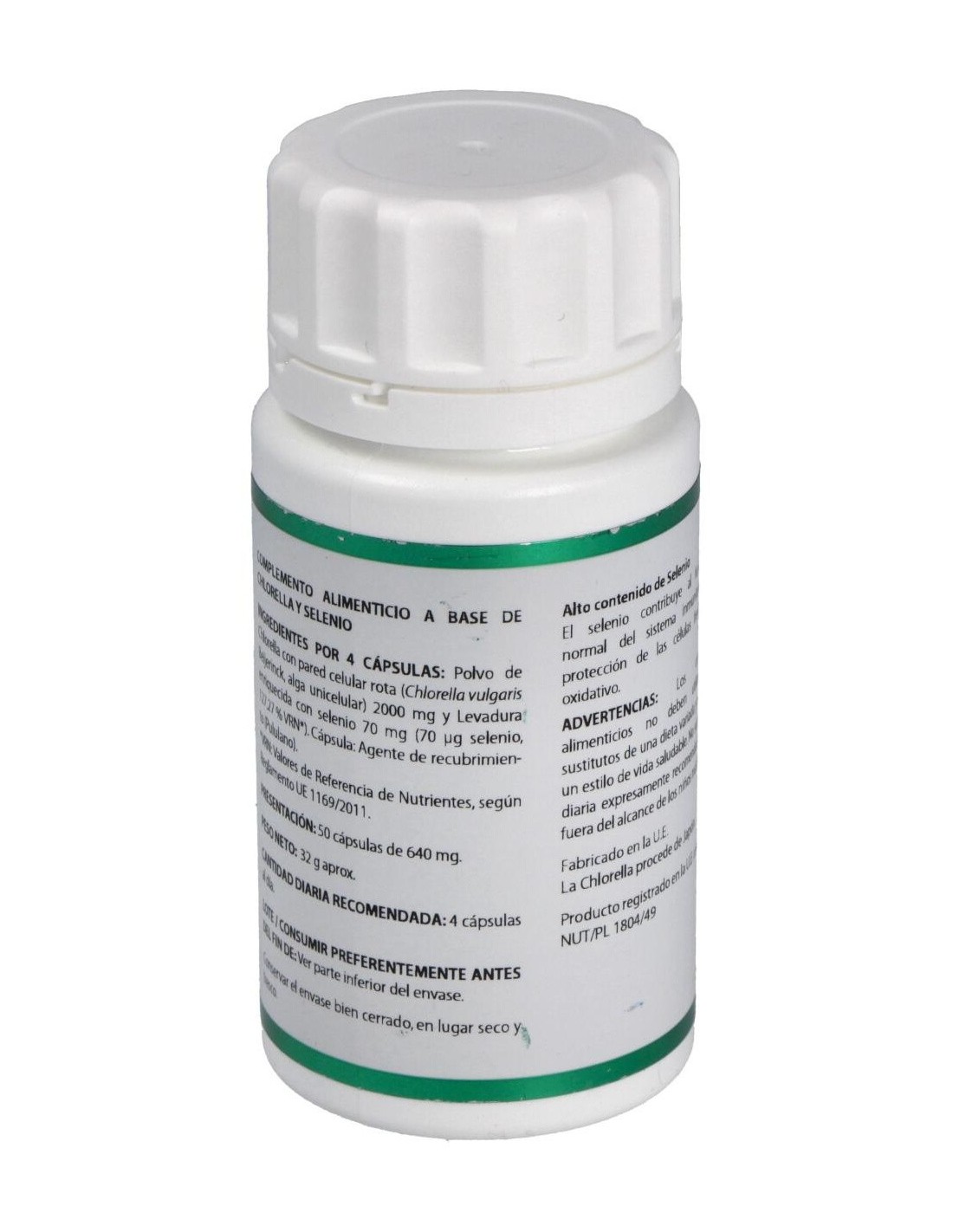 500 mg de chlorella (Chlorella pyrenoidosa ó C. vulgaris, alga entera).