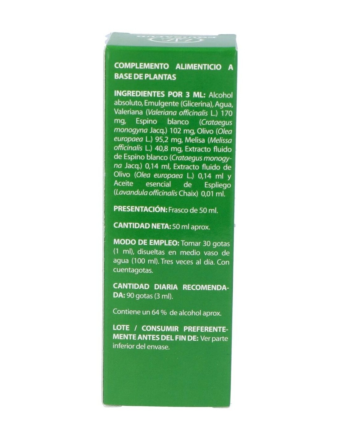 2.834,5 mg de valeriana (Valeriana officinalis, raíz y rizoma, > 0,17 % ácido valerénico).