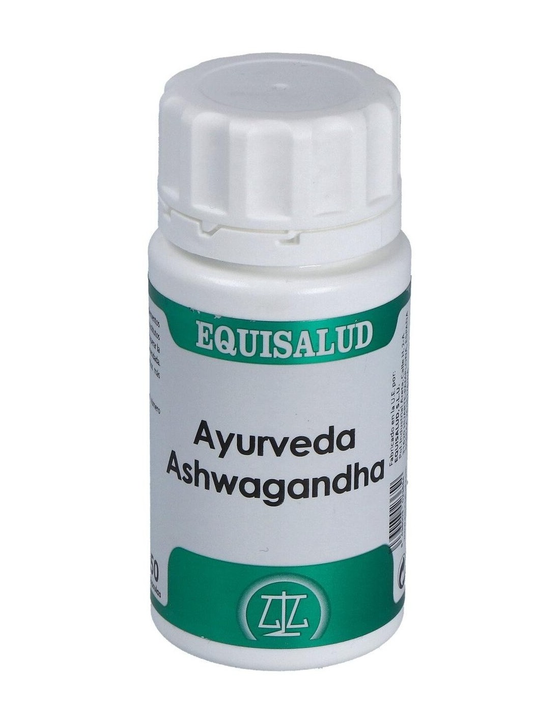 EQUISALUDHolofit Ayurveda Ashwagandha 50Cap. de Equisalud es un suplemento natural para adultos que contribuye al bienestar general, formulado con extracto estandarizado de ashwagandha para apoyar el equilibrio físico y mental.