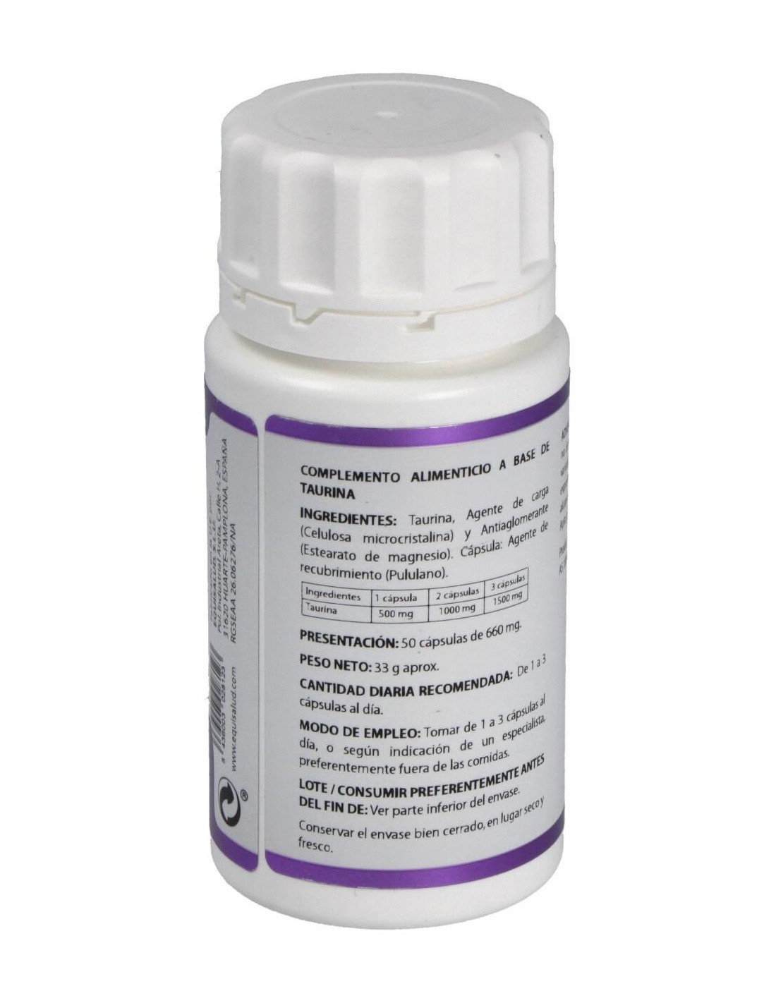 Ingredientes activos por cápsula:500 mg de taurina.Modo de empleo:Tomar de 1 a 3 cápsulas al día, preferentemente con las comidas.Presentación:Bote de 50 cápsulas.