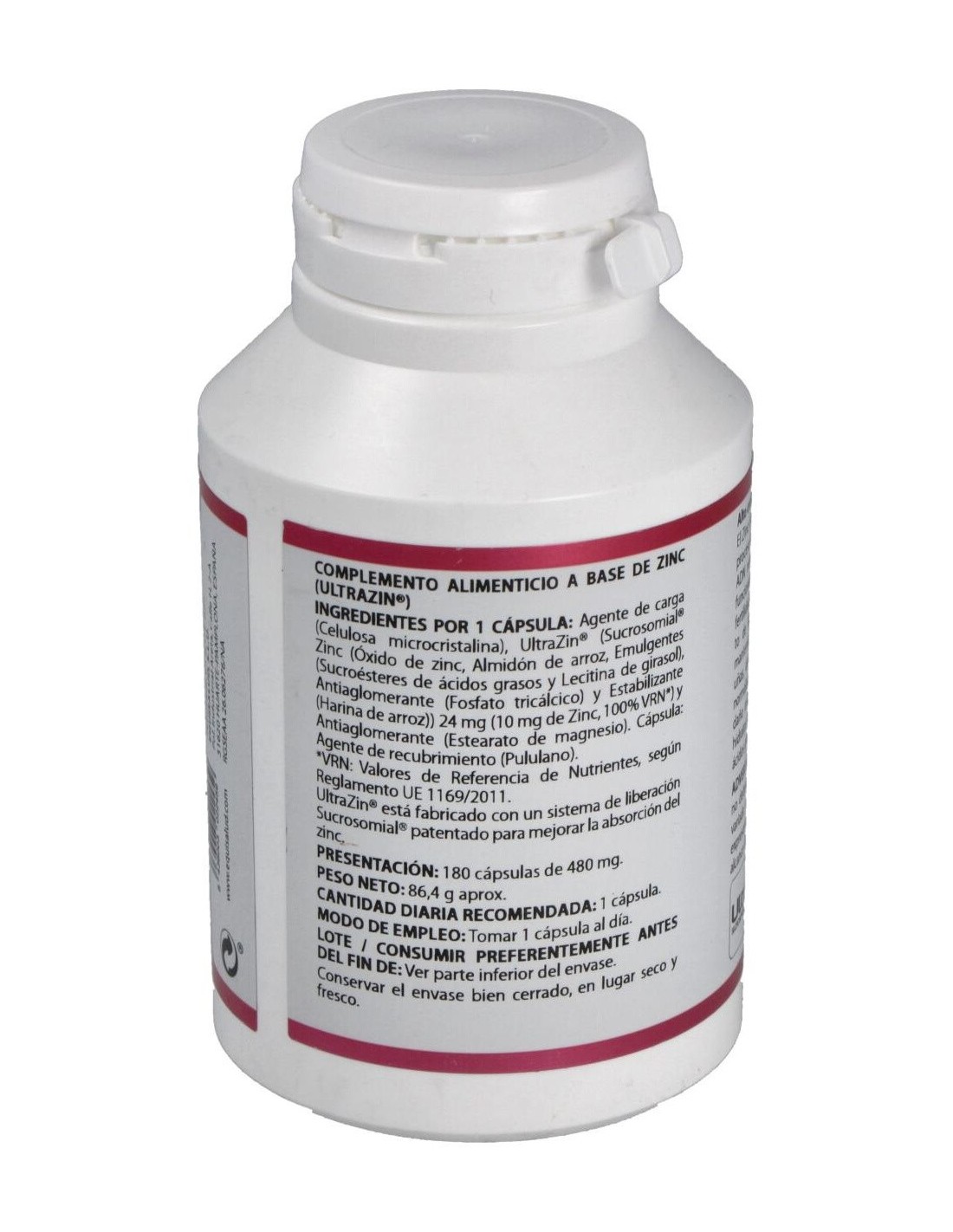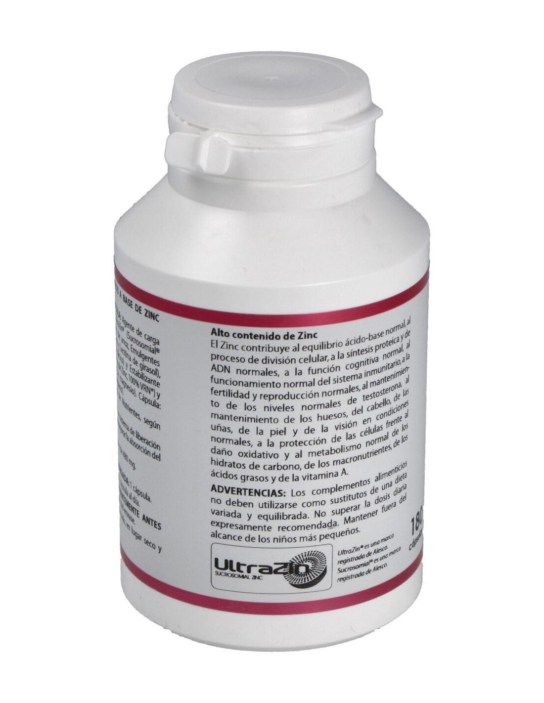 ULTRAZIN* (SUCROSOMIAL® ZINC, ZINC LIPOSOMADO, 42-52 % ZINC), 24 MG. EXCIPIENTE TECNOLÓGICO: CELULOSA MICROCRISTALINA (AGENTE DE CARGA), C.S. Y ESTEARATO DE MAGNESIO (ANTIAGLOMERANTE), C.S. ENVOLTURA: POLISACÁRIDO DE ORIGEN VEGETAL (PULULANO).