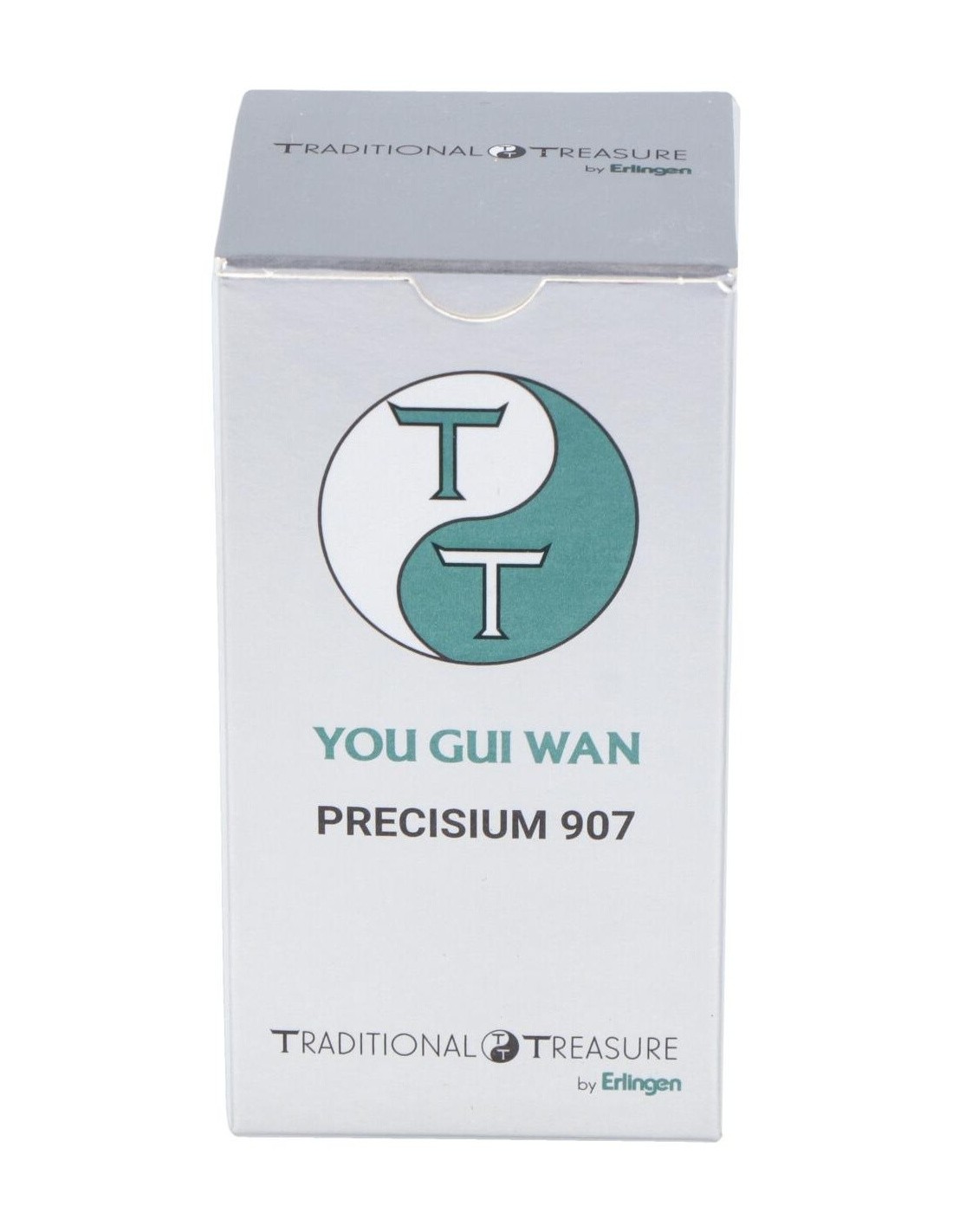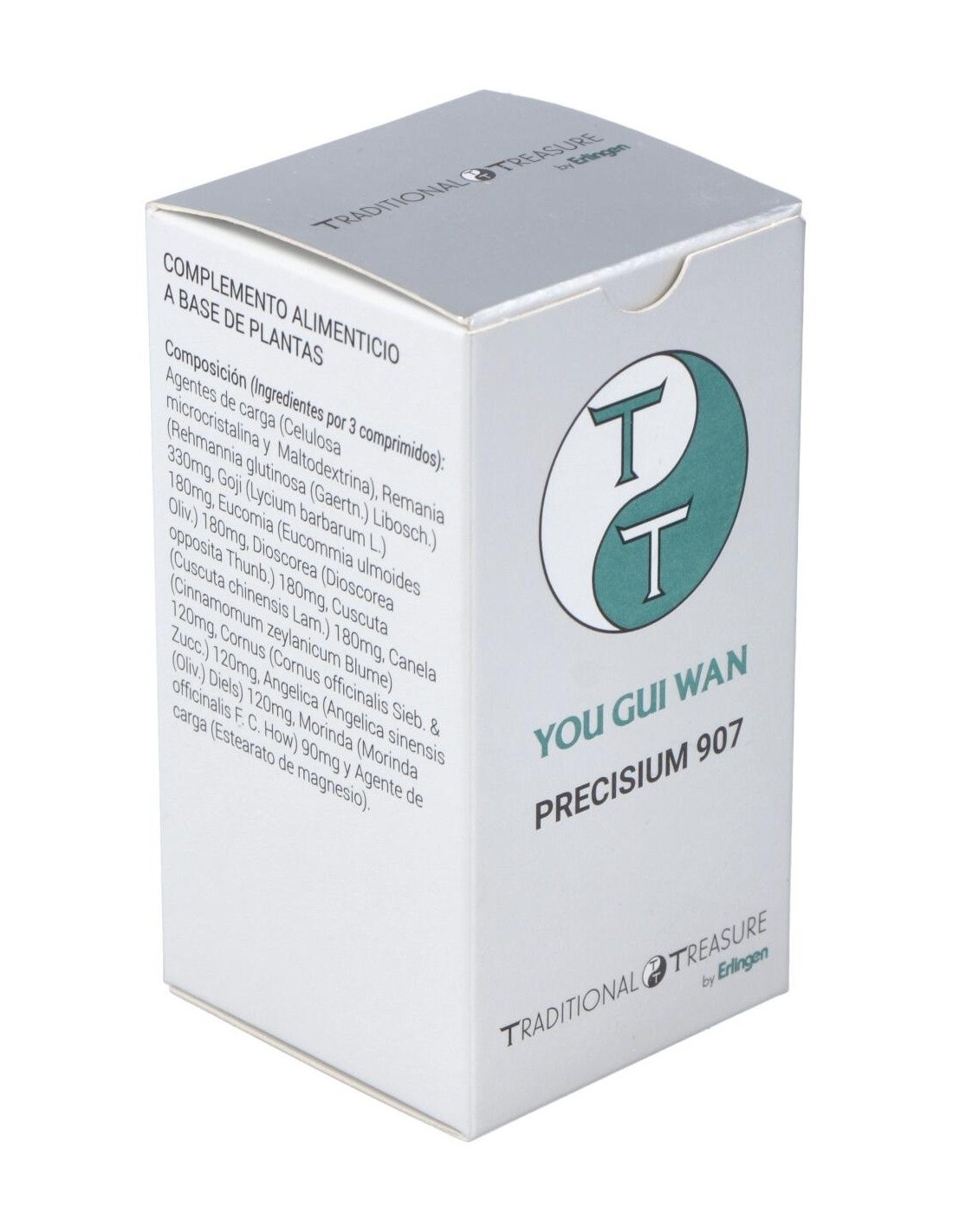 Agentes de carga (Celulosa microcristalina y Maltodextrina), Remania (Rehmannia glutinosa (Gaertn.) Libosch.) 330 mg, Goji (Lycium barbarum L.) 180 mg, Eucomia (Eucommia ulmoides Oliv.) 180 mg, Dioscorea (Dioscorea opposita Thunb.) 180 mg, Cuscuta (Cuscuta chinensis Lam.) 180 mg, Canela (Cinnamomum zeylanicum Blume) 120 mg, Cornus (Cornus officinalis Sieb. & Zucc.) 120 mg, Angélica (Angelica sinensis (Oliv.) Diels) 120 mg, Morinda (Morinda officinalis F. C. How) 90 mg y Agente de carga (Estearato de magnesio).