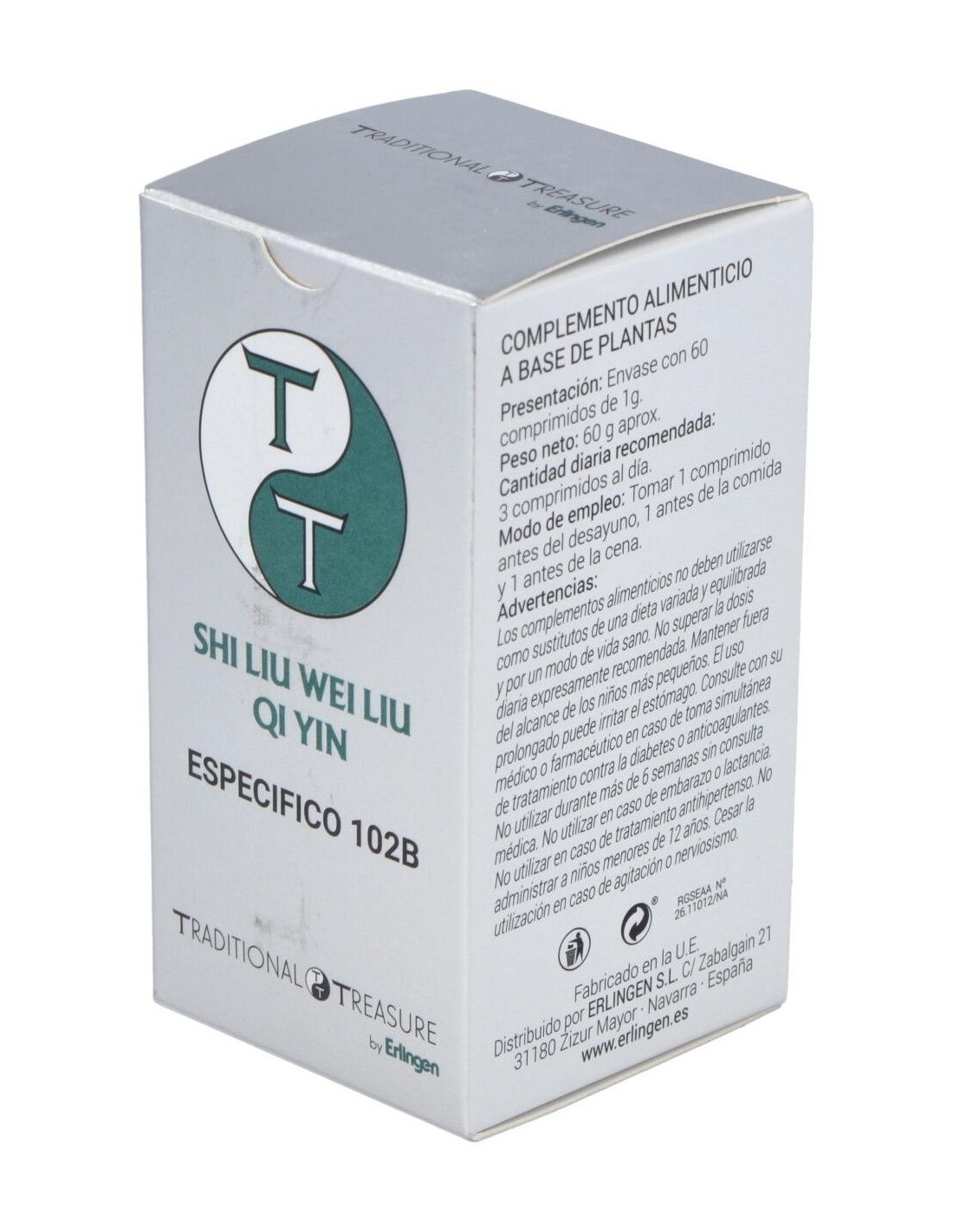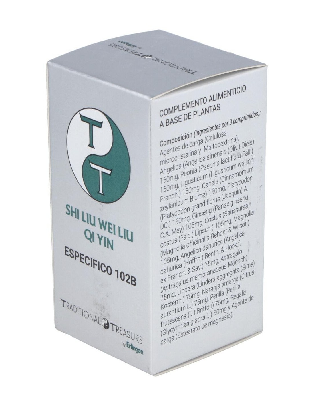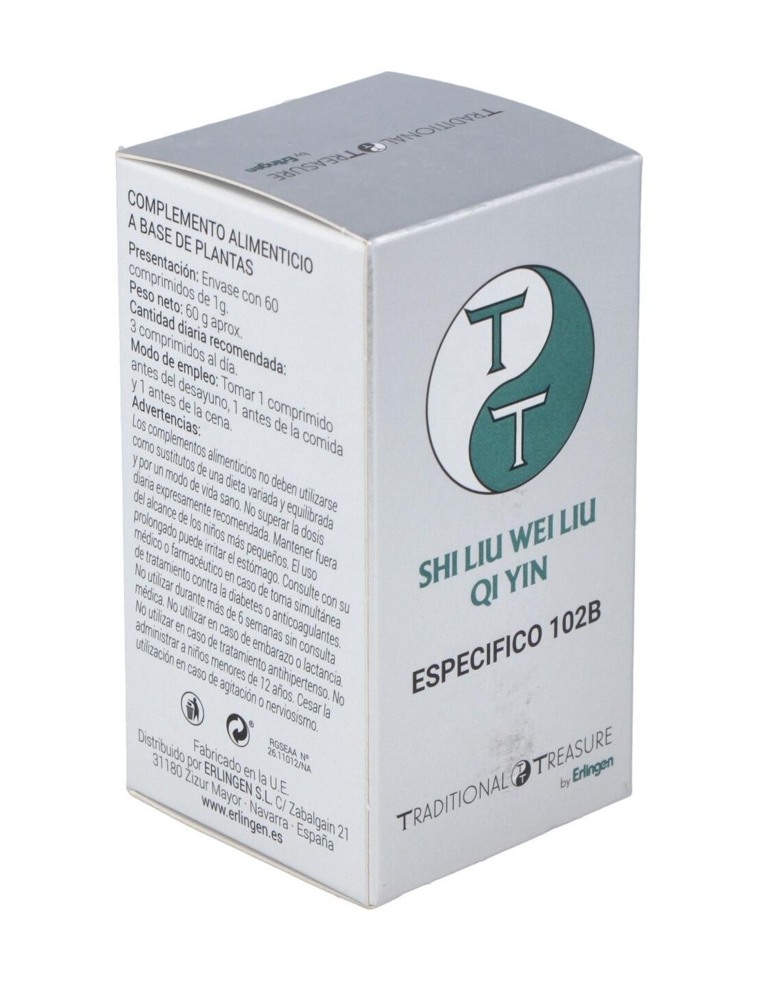 Erlingen Especifico 102B 60comp contiene una combinación de hierbas medicinales que se utiliza en la medicina tradicional china. En caso de tener un problema de salud o tomar medicación, consultar antes con un profesional sanitario.
