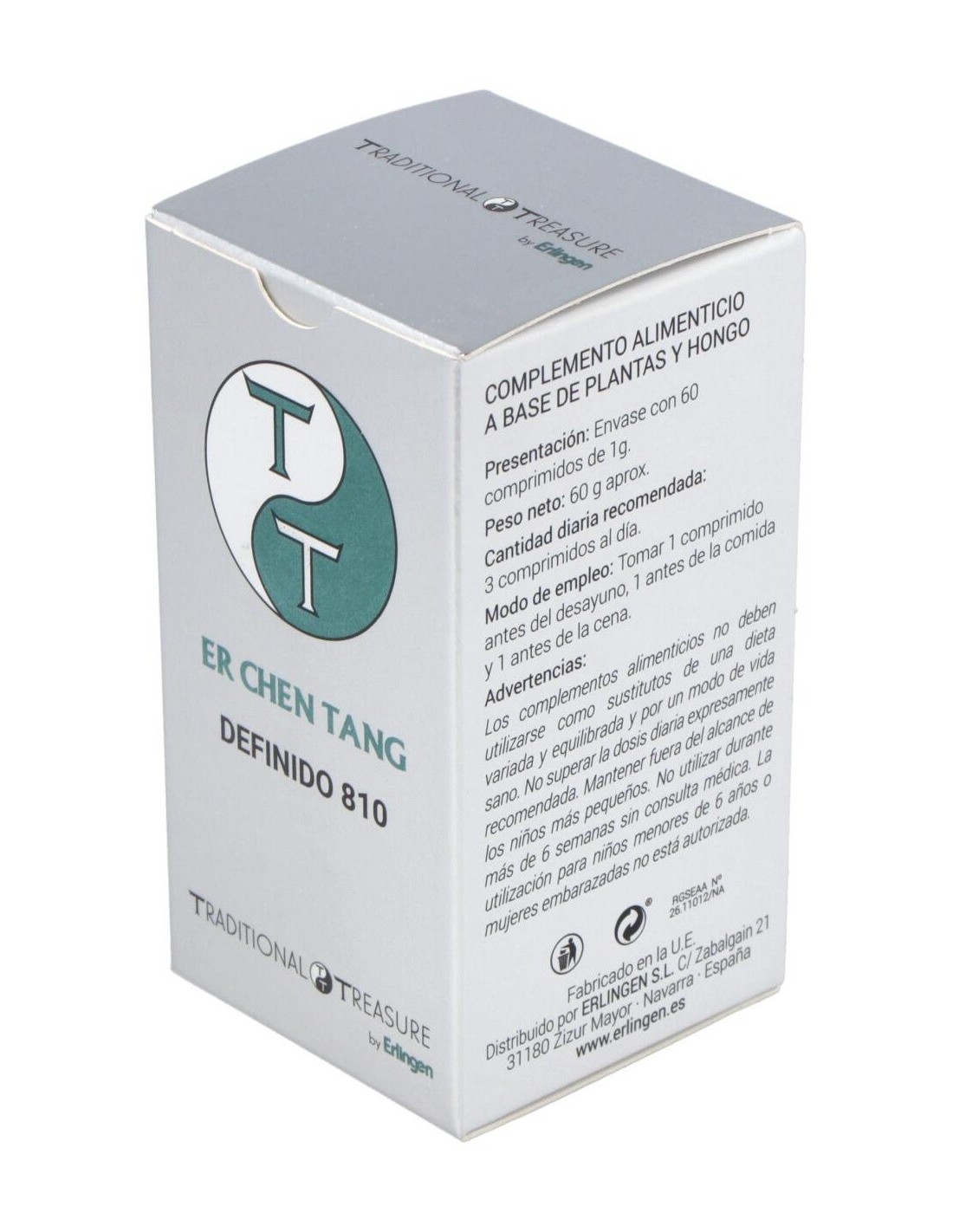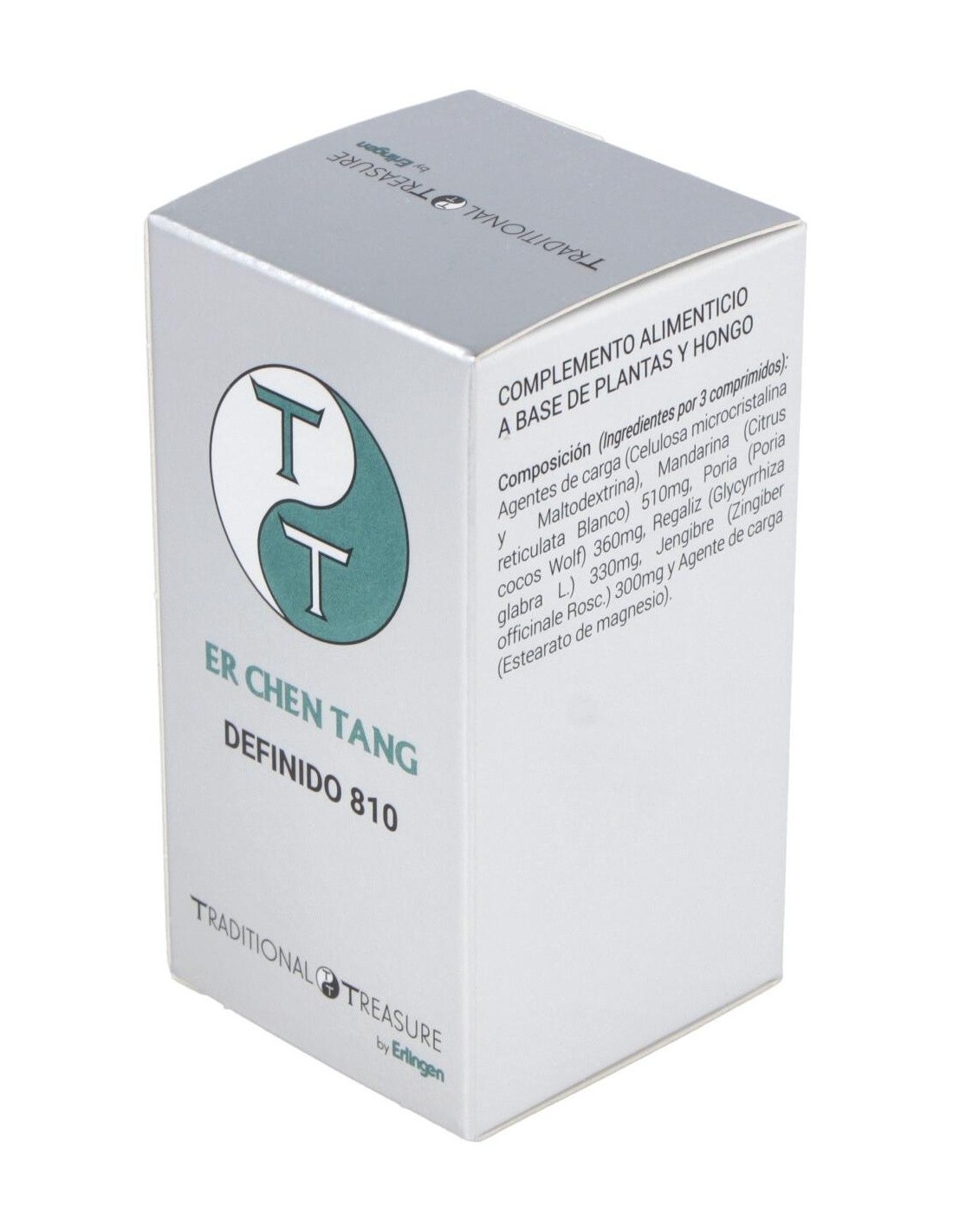 Agentes de carga (Celulosa microcristalina y Maltodextrina), Mandarina (Citrus reticulata Blanco) 510 mg, Poria (Poria cocos Wolf) 360 mg, Regaliz (Glycyrrhiza glabra L.) 330 mg, Jengibre (Zingiber officinale Rosc.) 300 mg y Agente de carga (Estearato de magnesio).