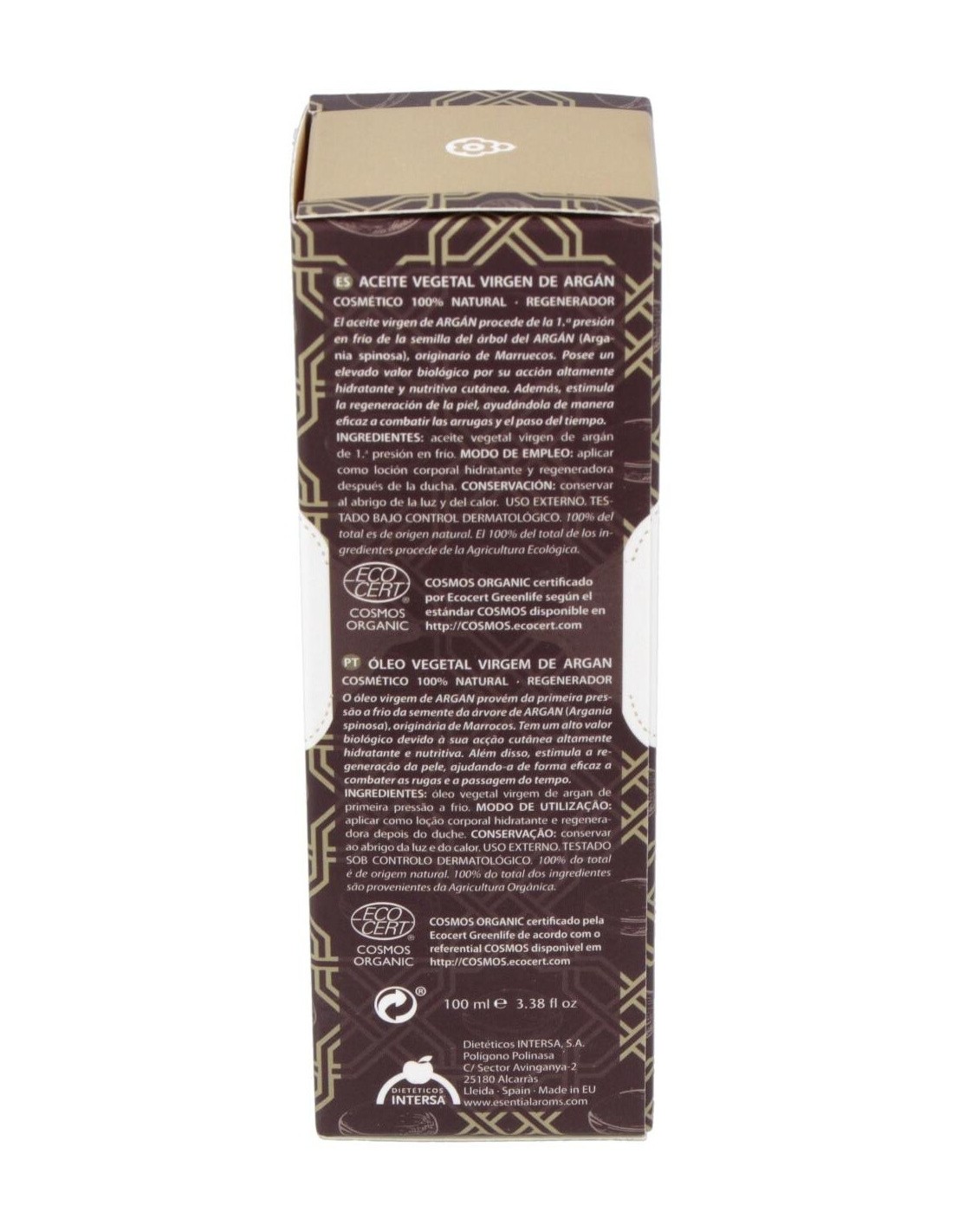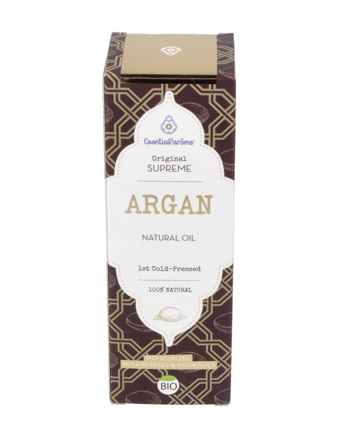 Es originario de marruecos, procedente de la agricultura ecológica, posee un elevado valor biológico, por su acción altamente hidratante y nutritiva cutánea. Además, gracias a su acción antiradicales libres y regeneradora celular, ayuda de manera eficaz a disminuir la profundidad de las arrugas y el paso del tiempo. Su elevado contenido en ácidos grasos esenciales (3 veces superior al aceite de oliva), vitamina E natural y fitoesteroles, dotan a este aceite vegetal virgen de unas propiedades únicas a nivel cosmético y dermatológico. El aceite de argán es altamente hidratante y nutritivo, regenerador celular y antioxidante. Está recomendado en cuidado especial de la piel seca, muy seca, descamada, prevención de la aparición de las arrugas del rostro.