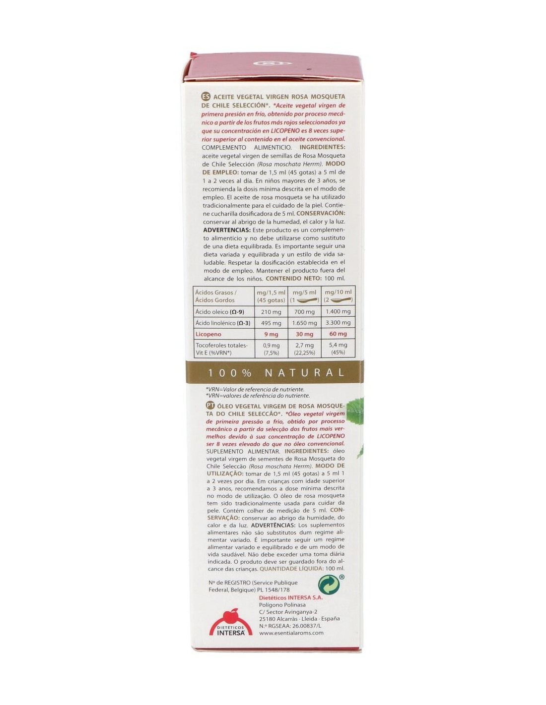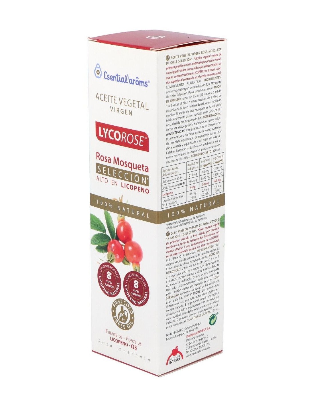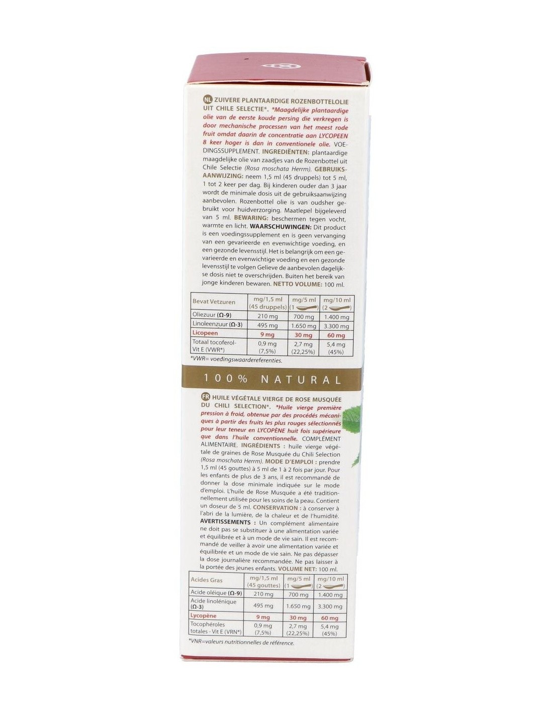 Aceite vegetal virgen de semillas de Rosa Mosqueta de Chile Selección (Rosa moschata Herrm).